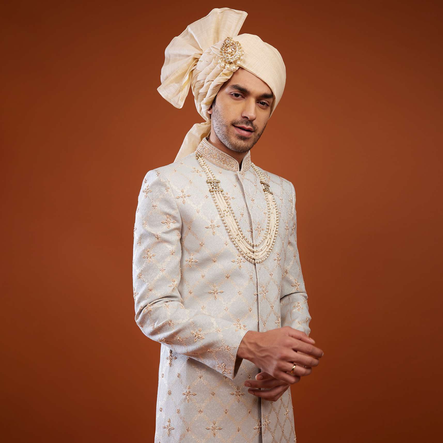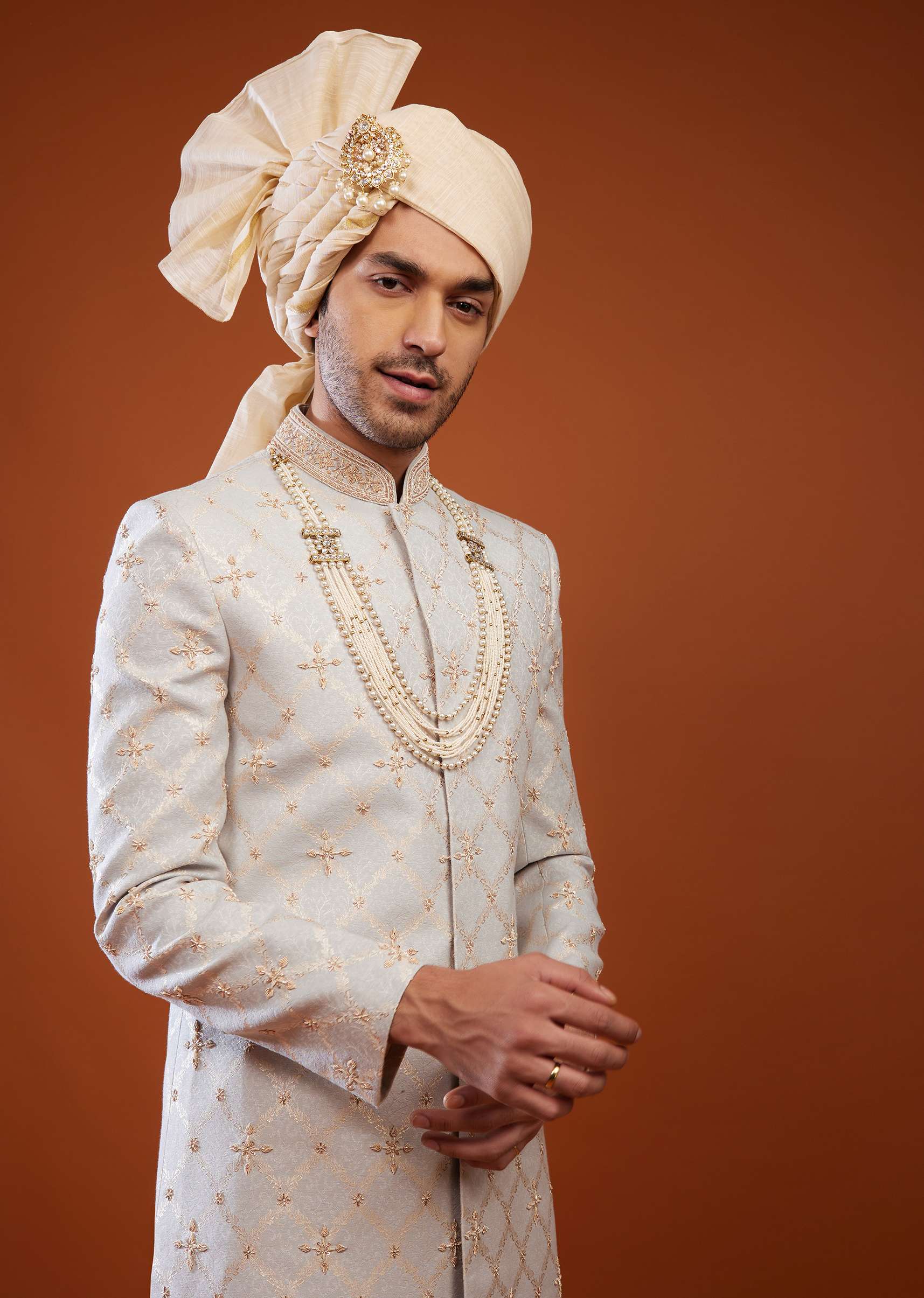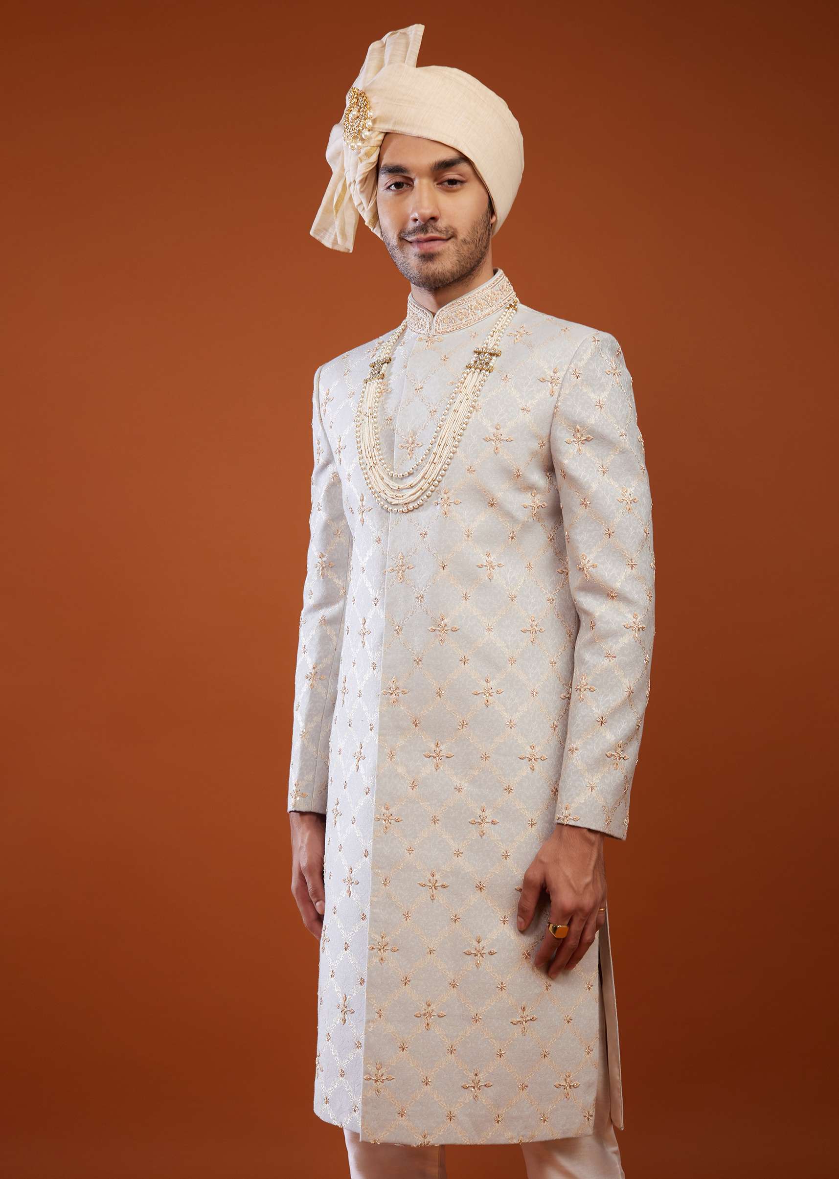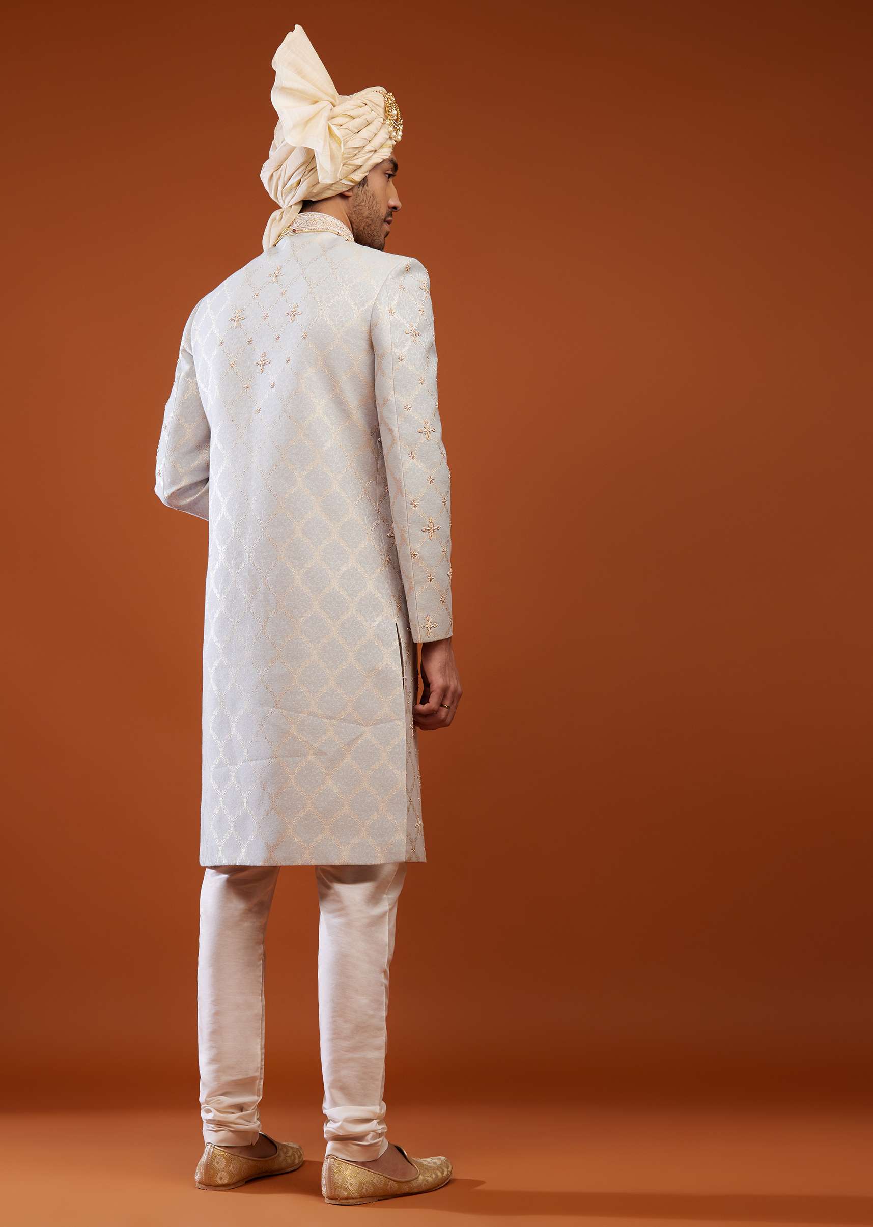 Cloud Grey Brocade Embroidered Sherwani Set
