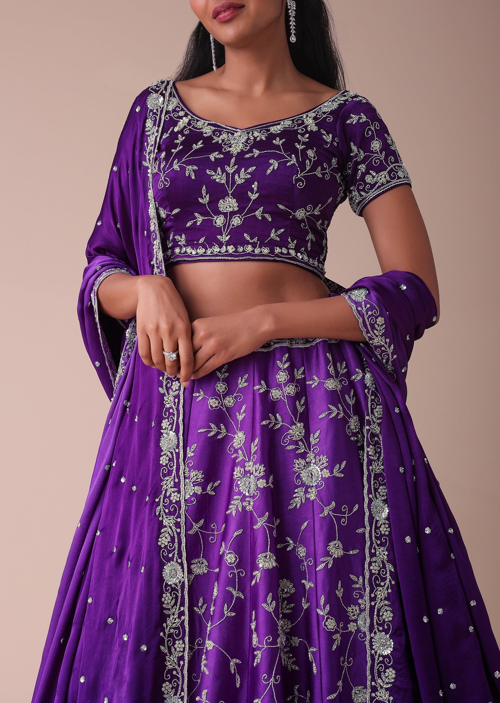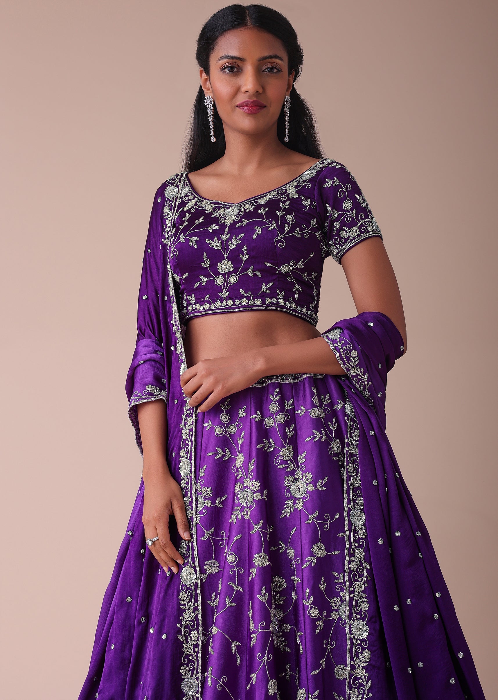 Violet Purple Ombre Lehenga With Handwork Embroidery