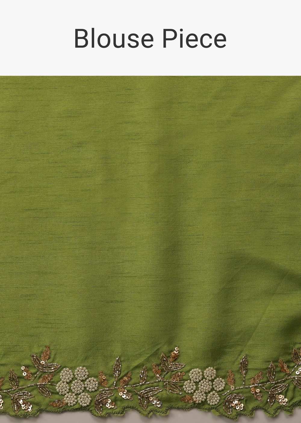 - This saree showcases a cutdana work scallop border that adds a touch of sophistication.