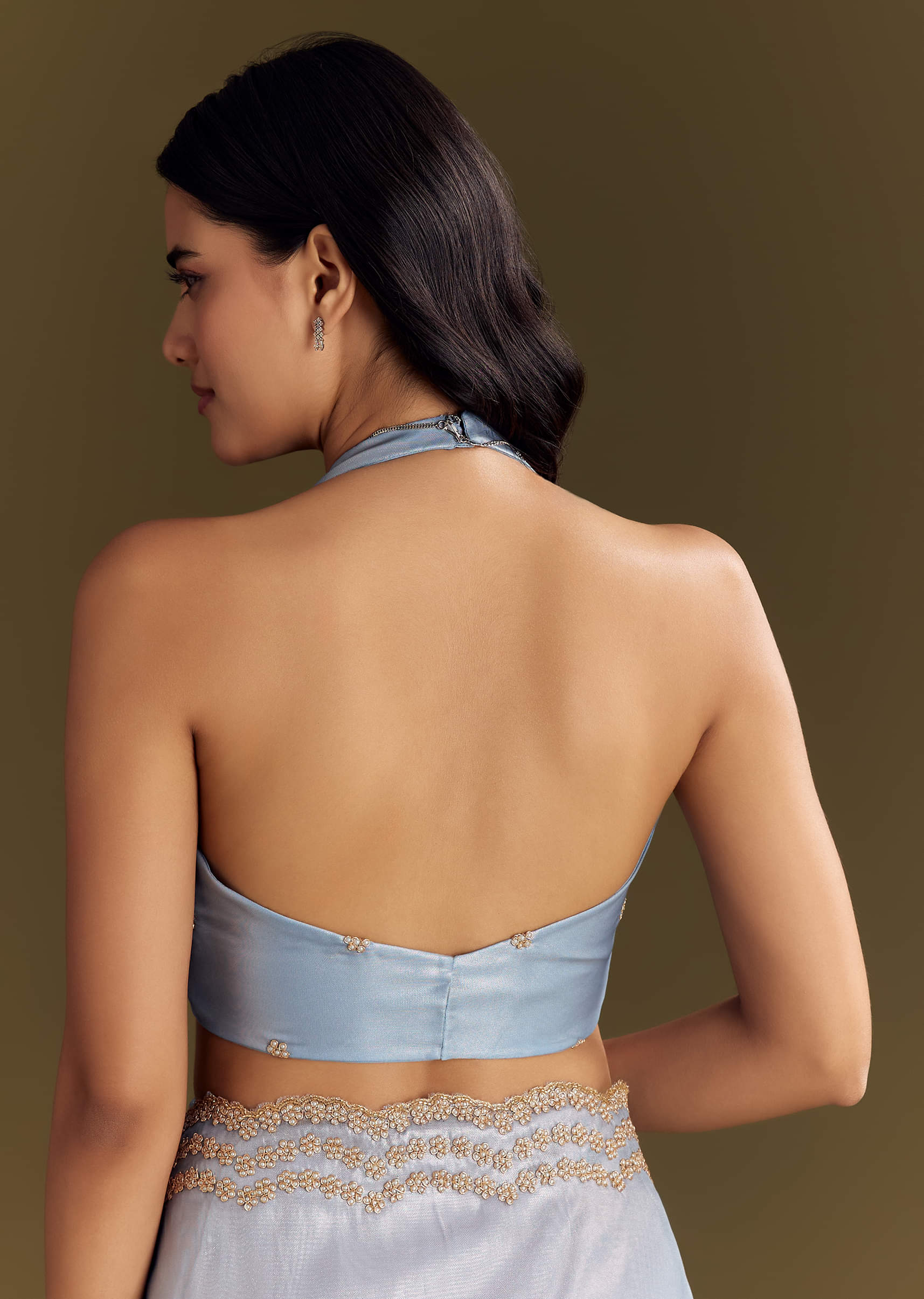 Pastel Blue Tissue Saree With Cutdana And Beads Scallop Border