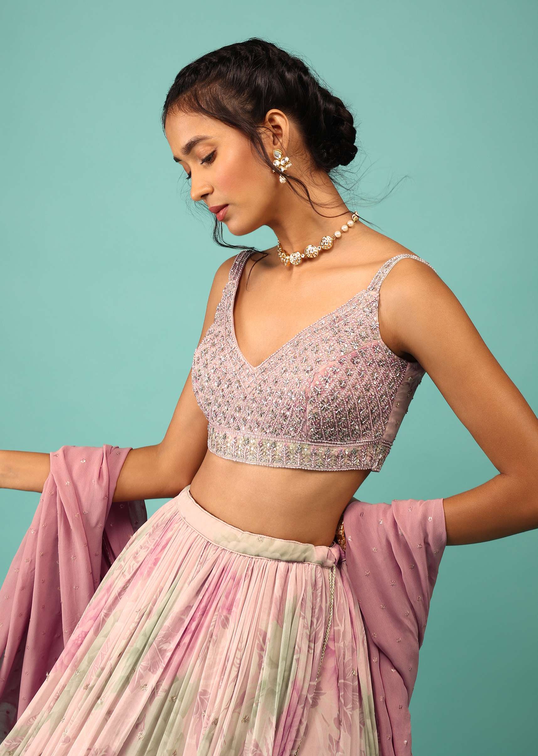 Onion Pink Lehenga In Georgette With Floral Print And Embroidery