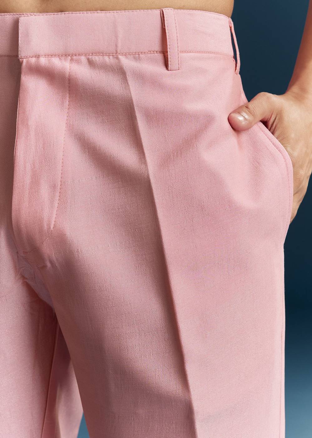 Vibrant and festive, this pink kurta jacket set in soft pastels is perfect for engagement and reception celebrations. Crafted in smooth silk fabric, it features intricate thread work combined with mirror detailing that adds sparkle and elegance. The mandarin collar and full sleeves create a structured and polished silhouette, making it ideal for a groomsman or the groom’s brother. Designed for comfort and style, this outfit ensures a standout and refined presence during wedding festivities. Awarded as the Most Trusted Brand, we're delivering styles you love, just as promised.