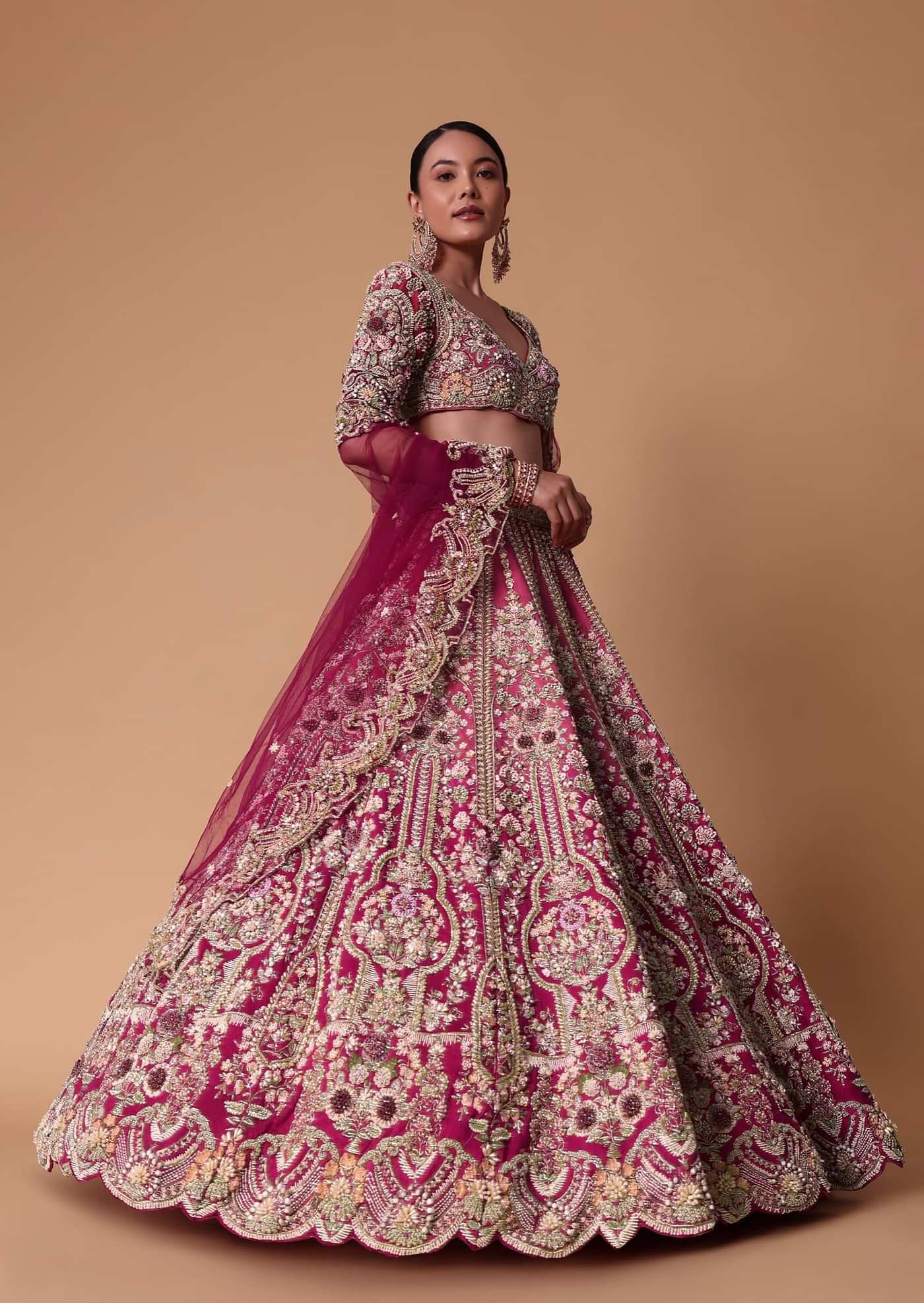Pink Raw Silk 16 Kali Lehenga And 3D Pearl Embellished Blouse Set
