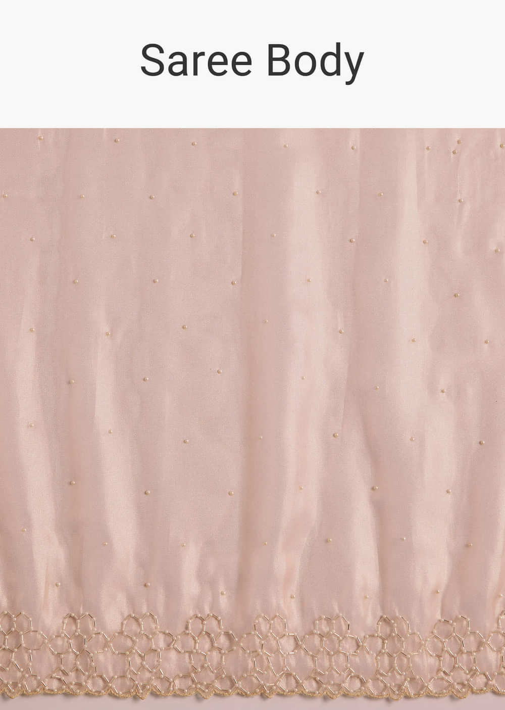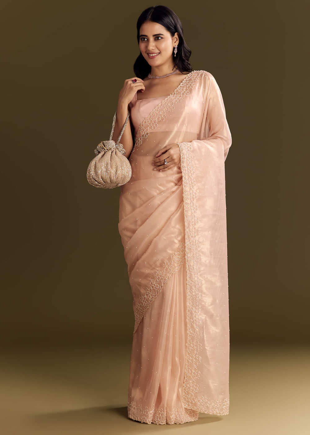 Peach Glass Tissue Saree With Cutdana And Beads Scallop Border