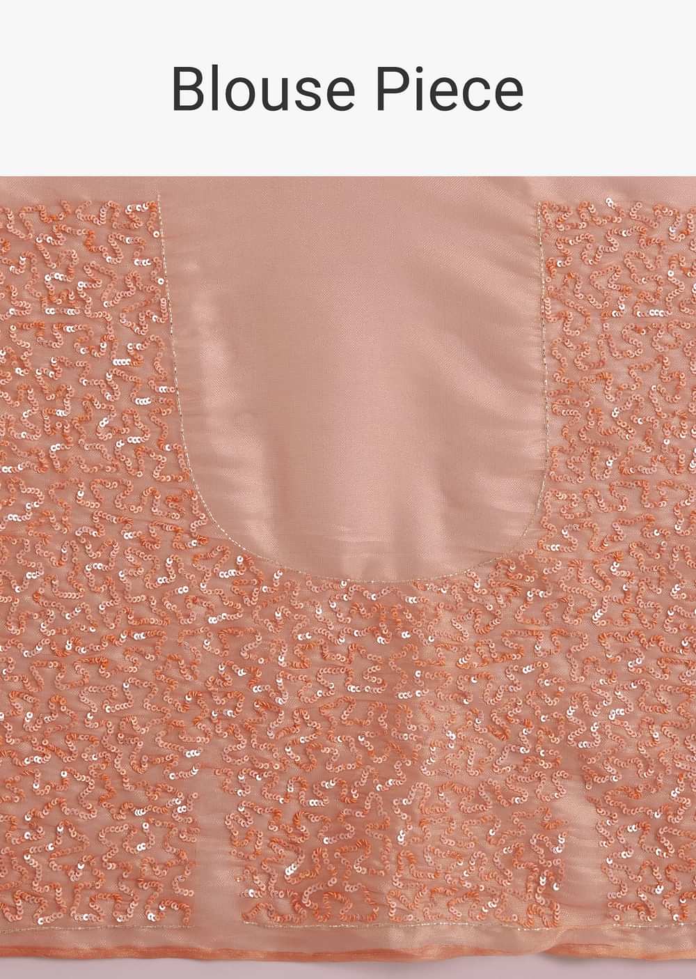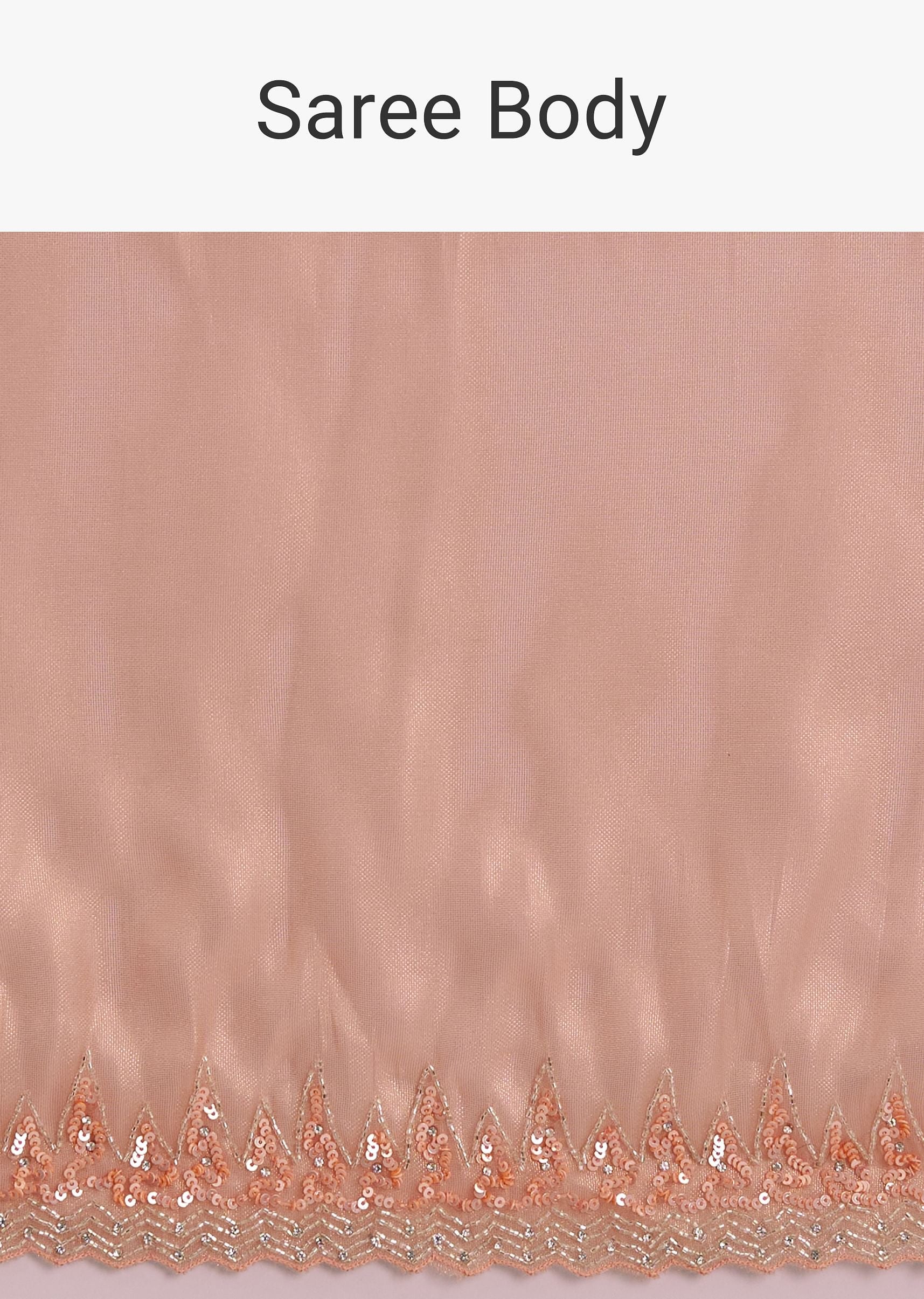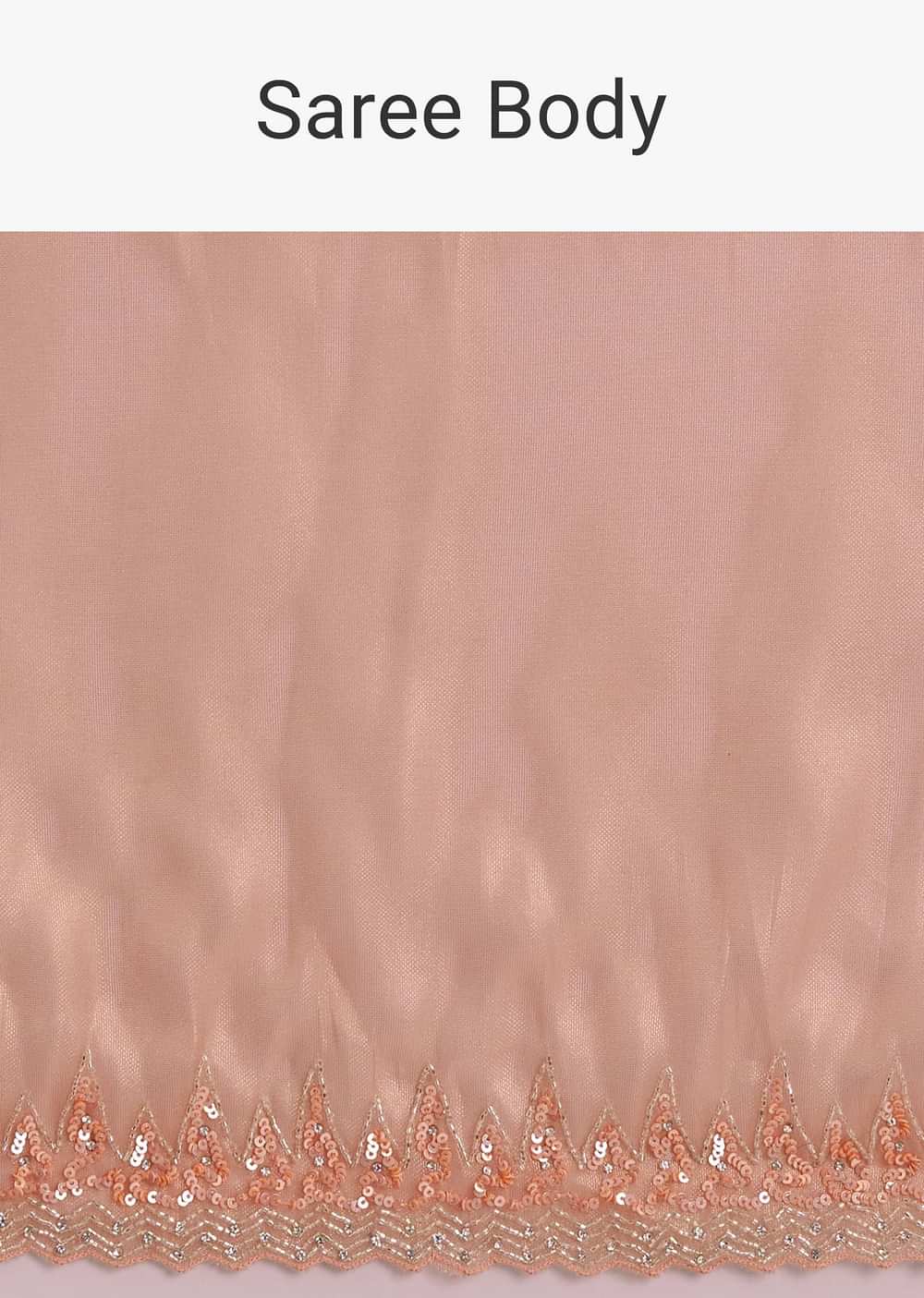 Peach Glass Tissue Saree With Cutdana Sequins Embroidery And Cutwork Scallop Border