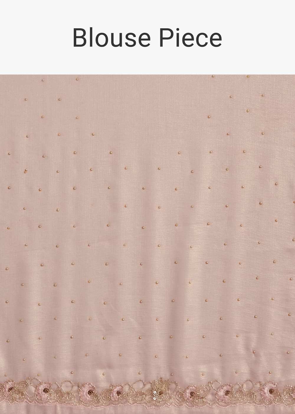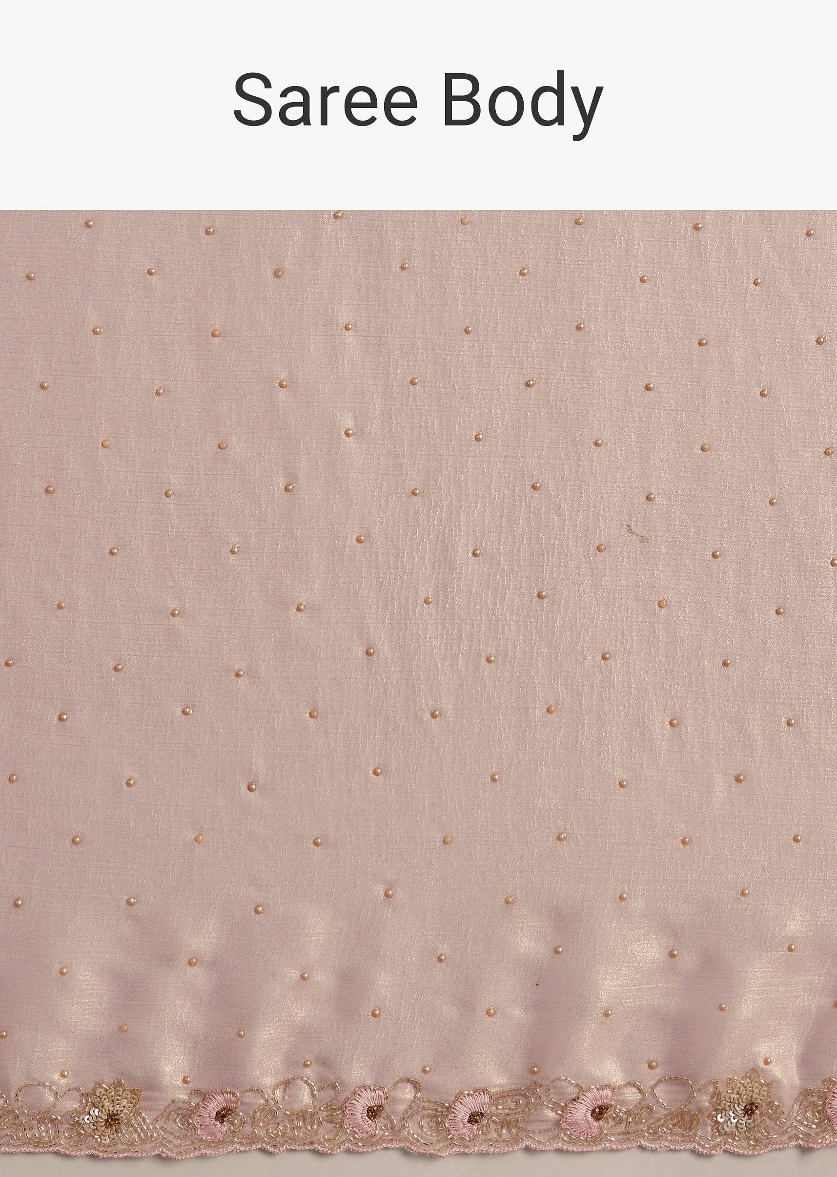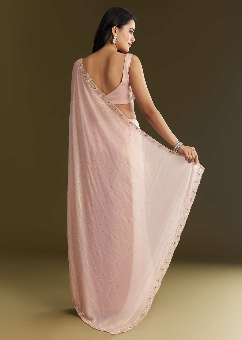 Peach Glass Tissue Saree With Moti Cutdana And Sequins Embroidery And Scallop Border