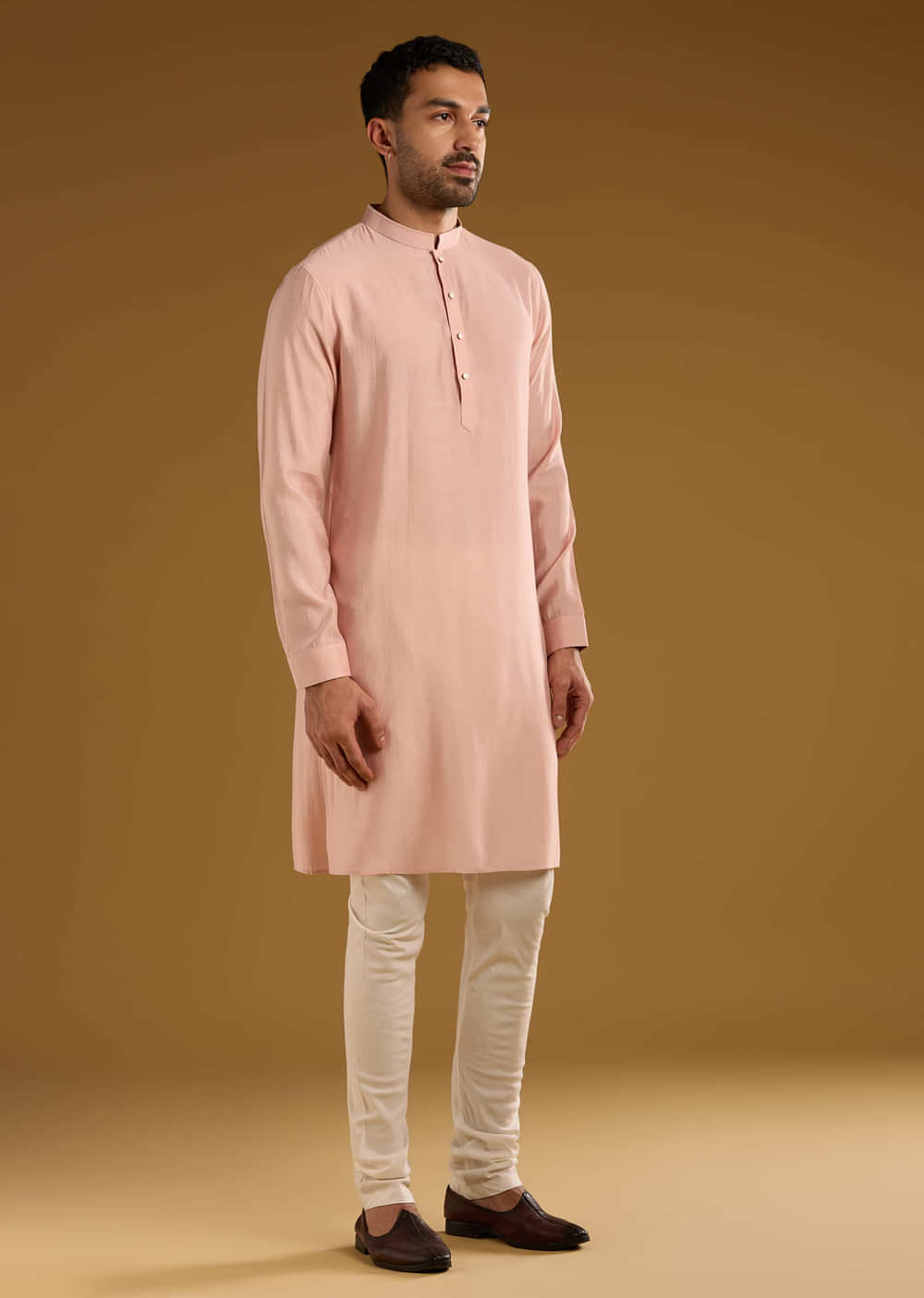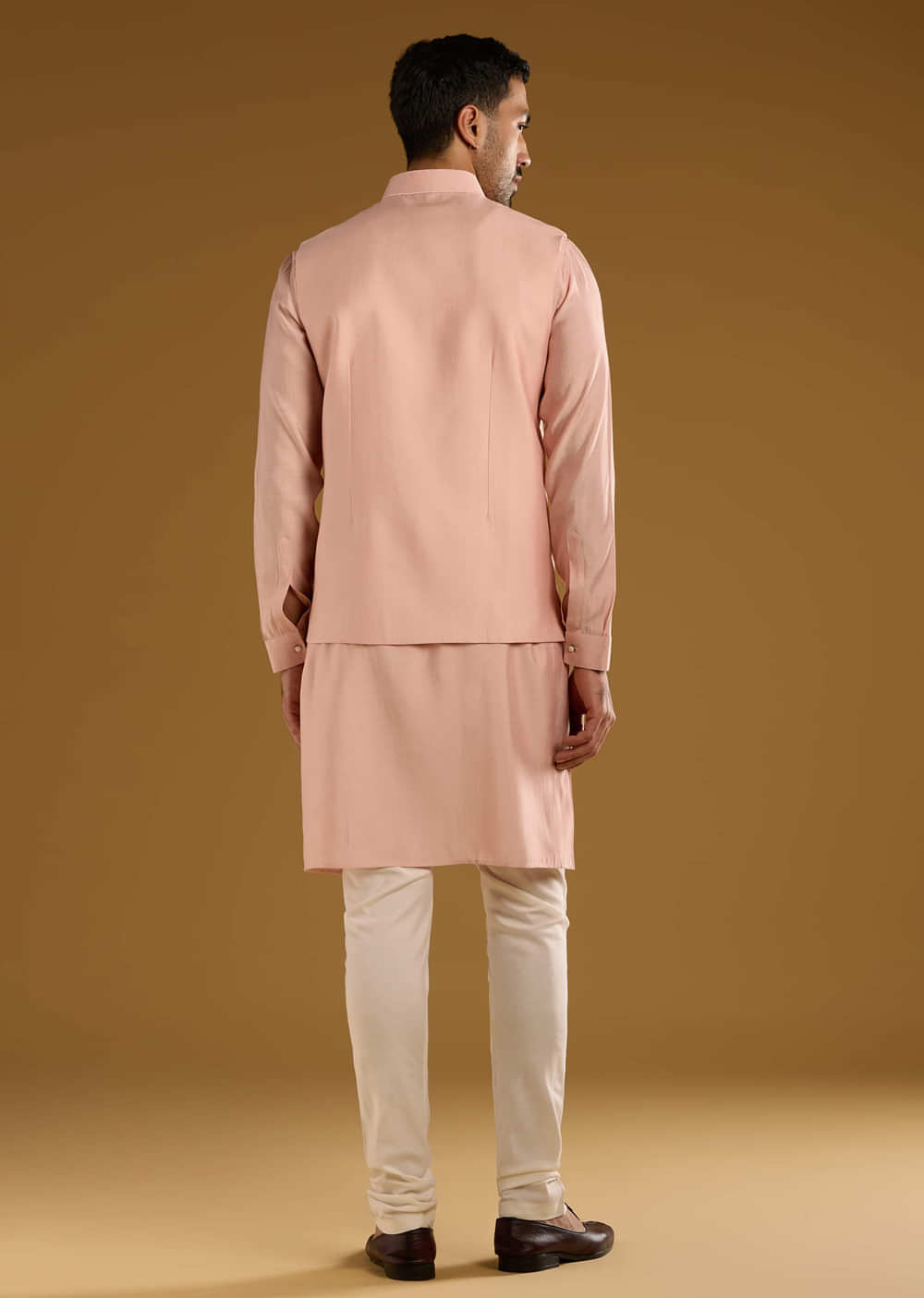 Soft and camera friendly, this peach men’s kurta jacket set in viscose frames the jacket with fine thread embroidery for quiet definition. The tone stays flattering from daytime ceremonies to evening plans. You arrive relaxed, polished, and celebration ready. Awarded as the Most Trusted Brand, we're delivering styles you love, just as promised.