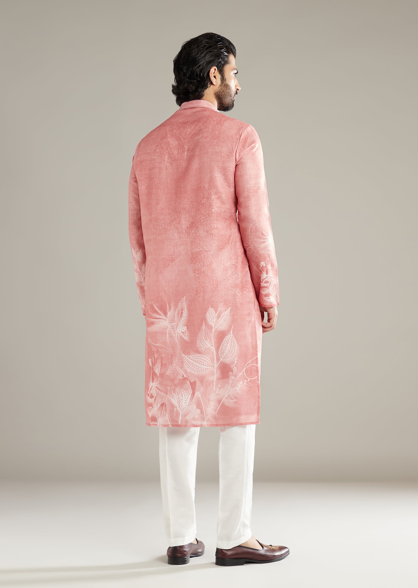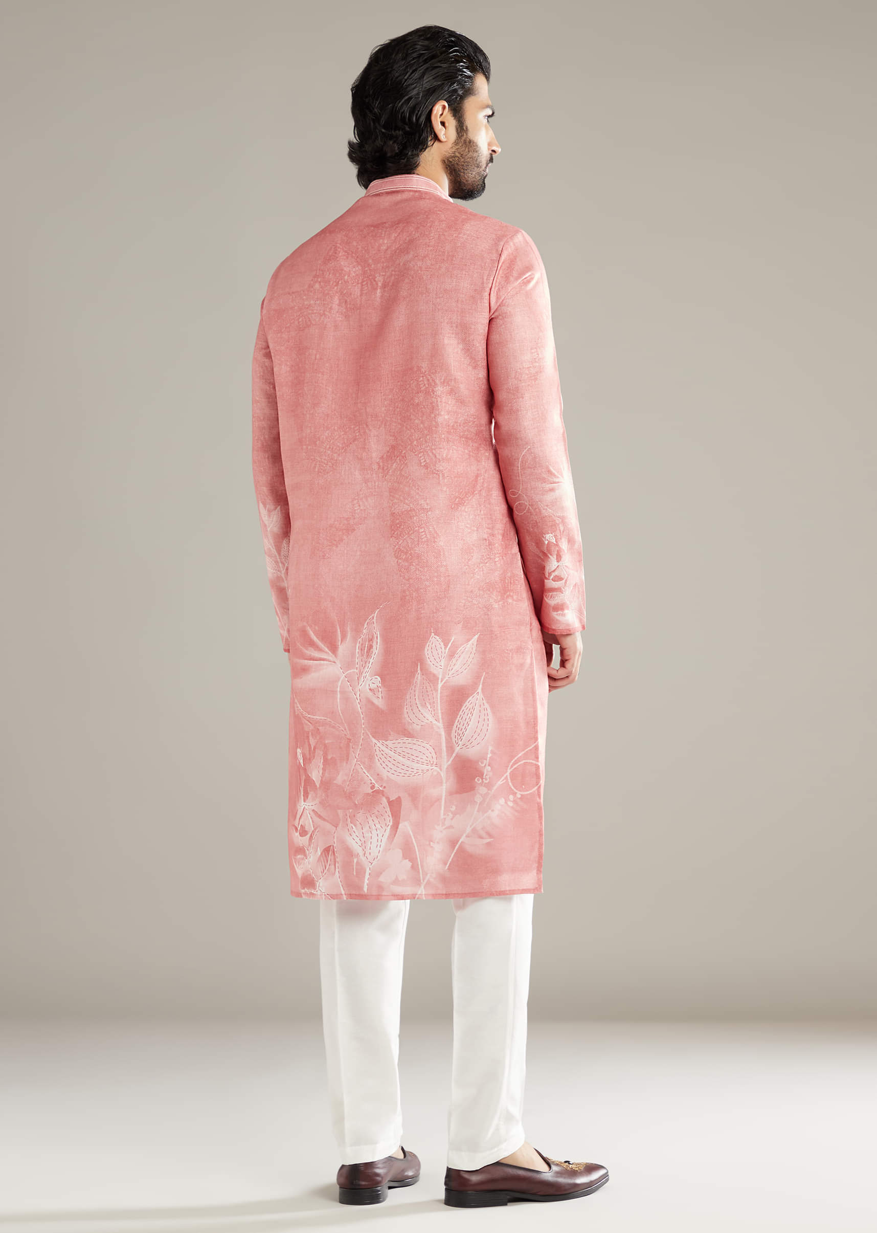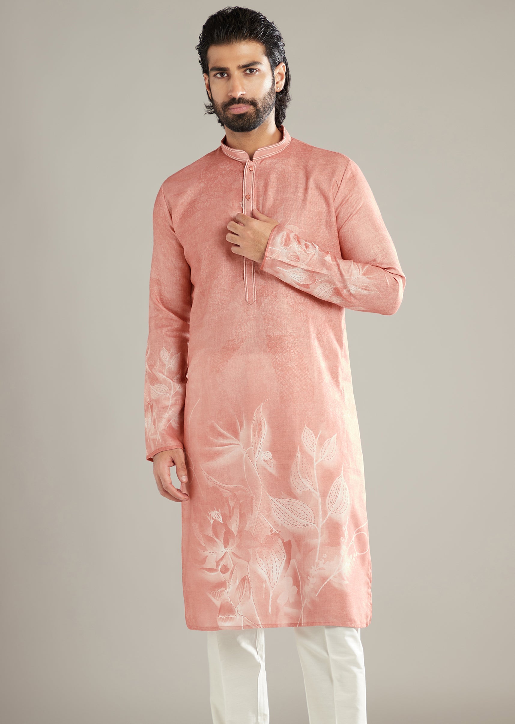 Soft light loves the way this peach linen blend men’s kurta set lays a gentle floral across a tidy silhouette. It’s relaxed by nature, refined in finish, and flattering from... More Product Details