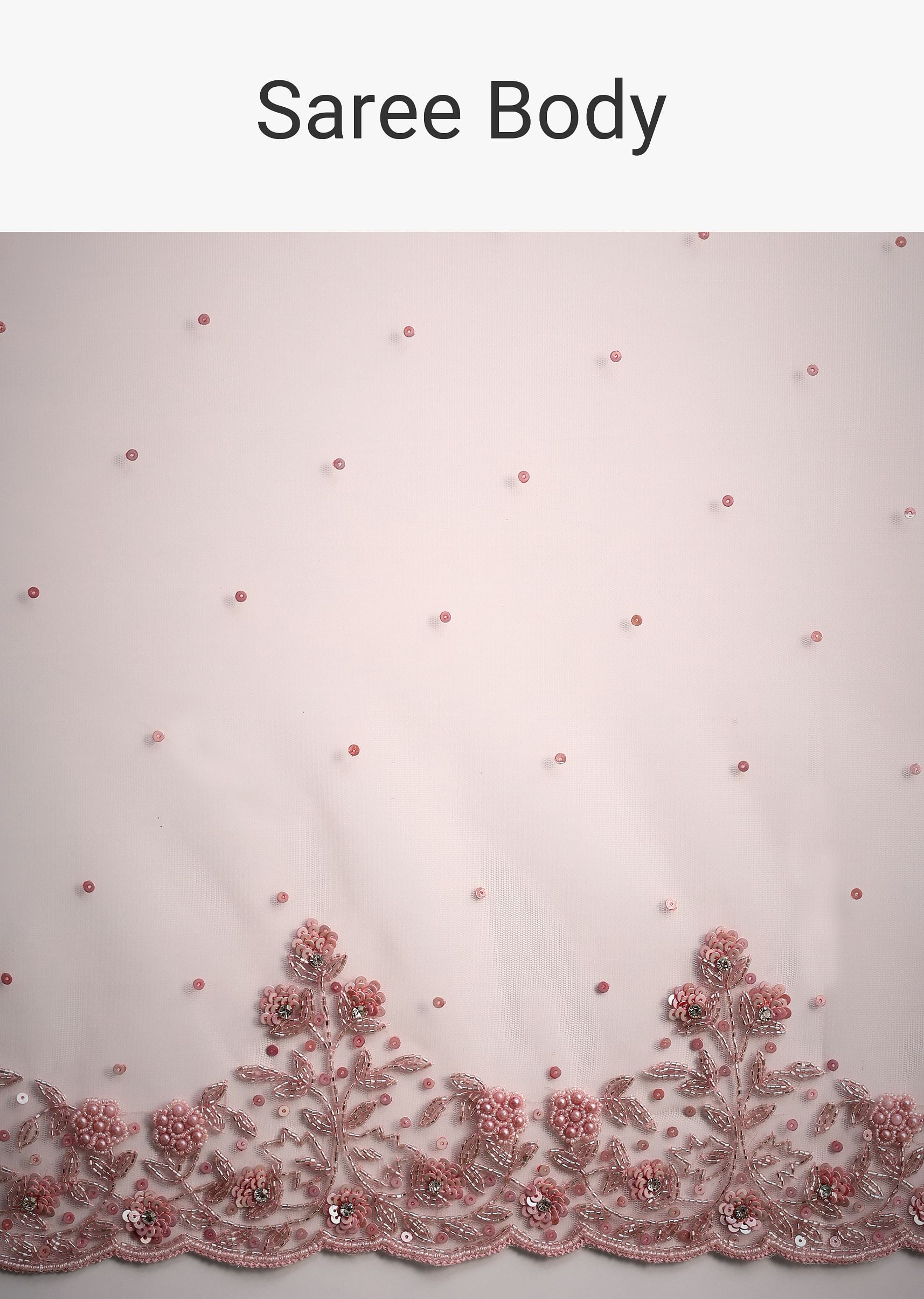 Peach Net Saree With Cutdana And Sequin Embroidery