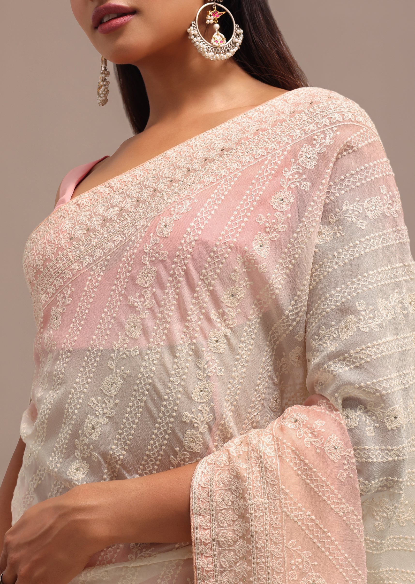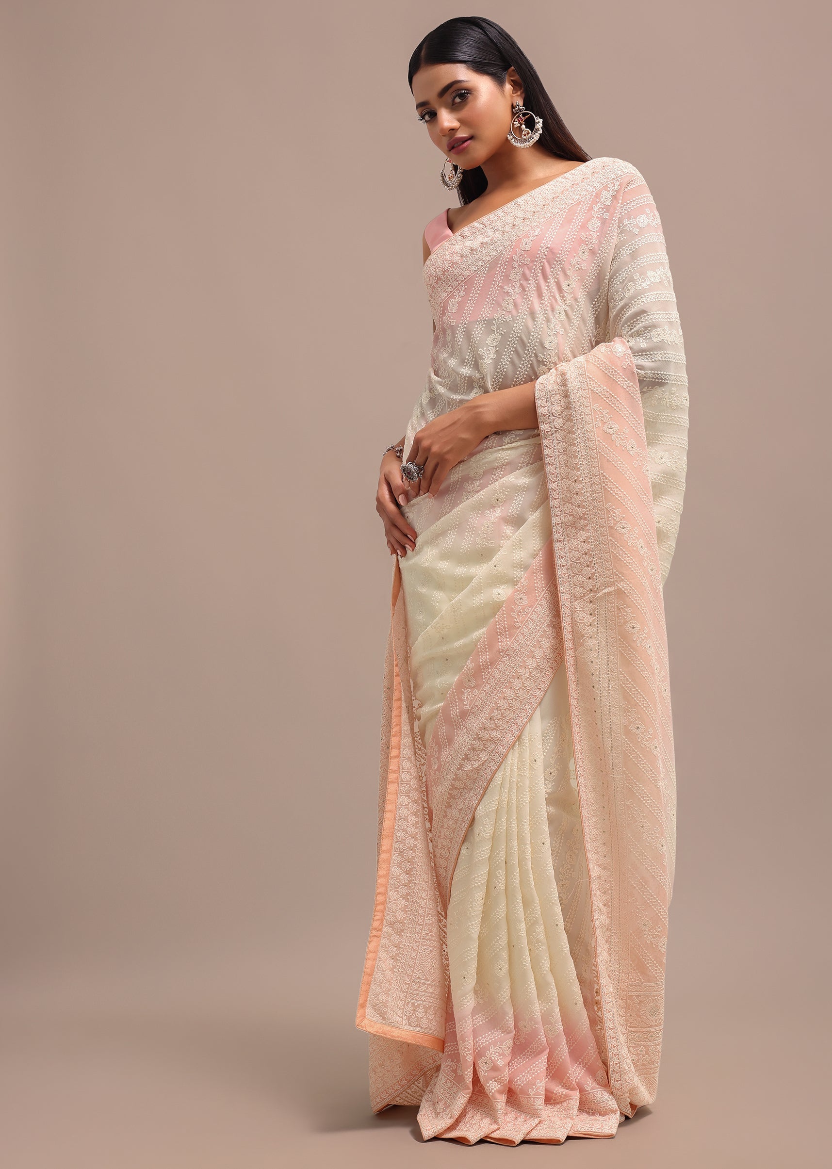 Peach Ombre Chikankari Saree With Unstitched Blouse