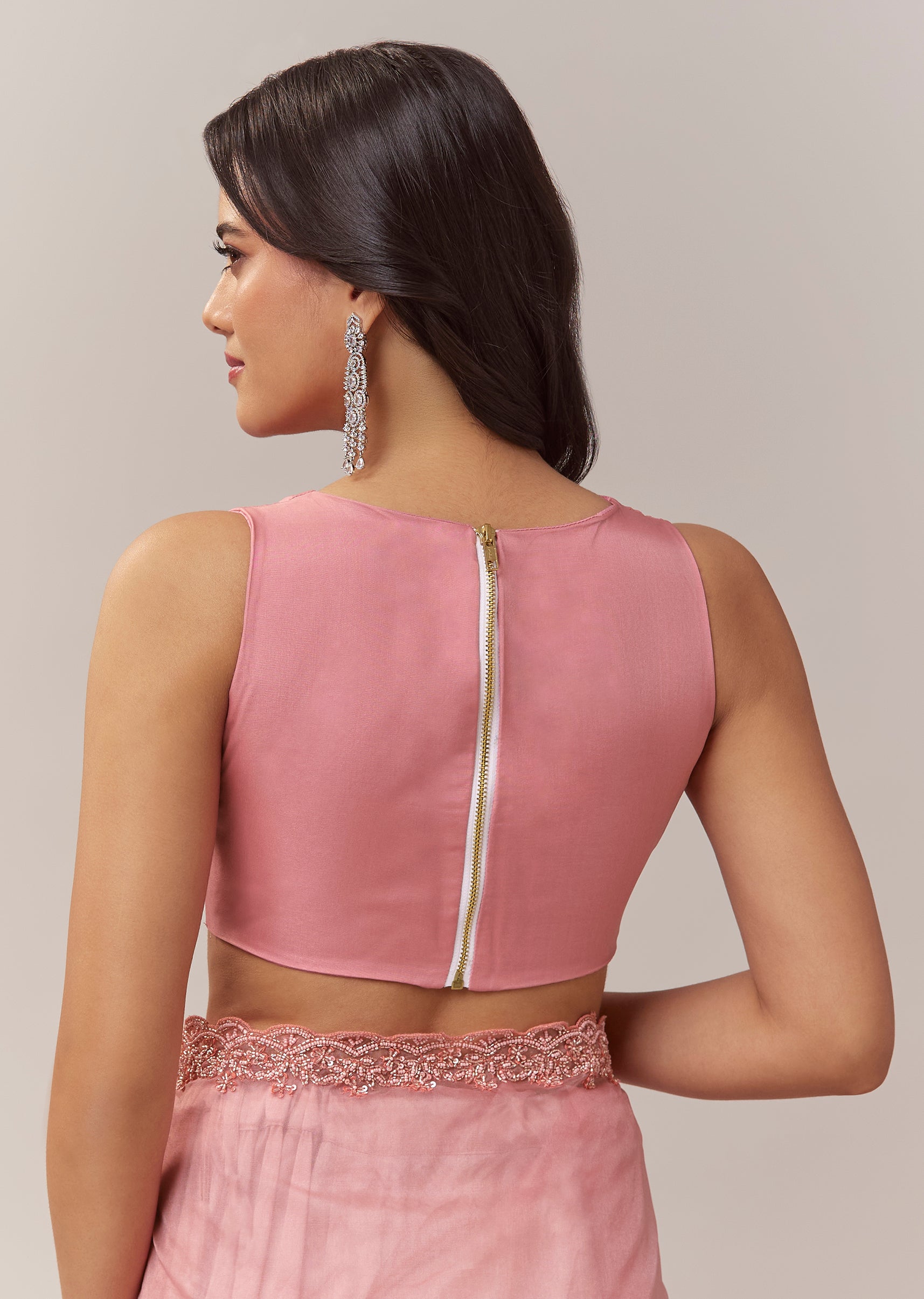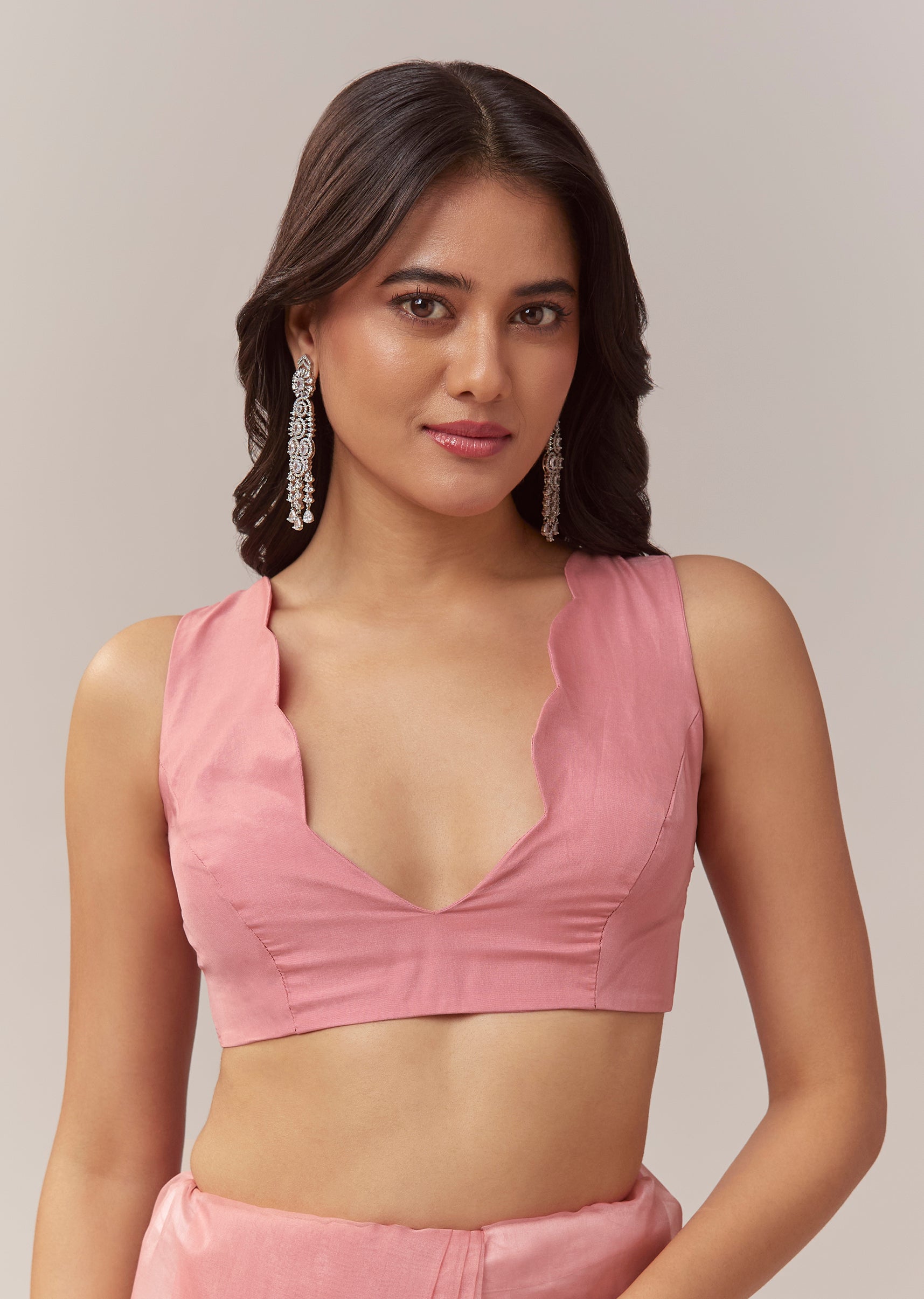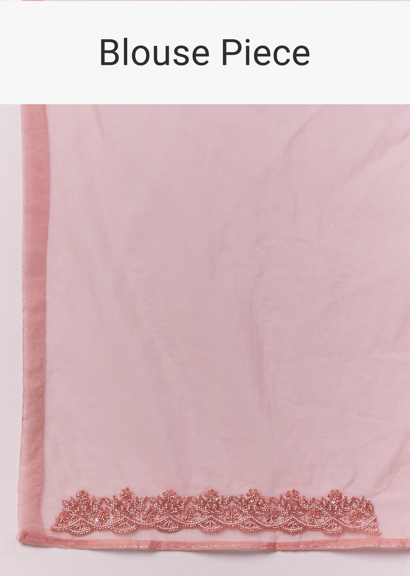 Peach Organza Saree With Scallop Border And Butti Embroidery