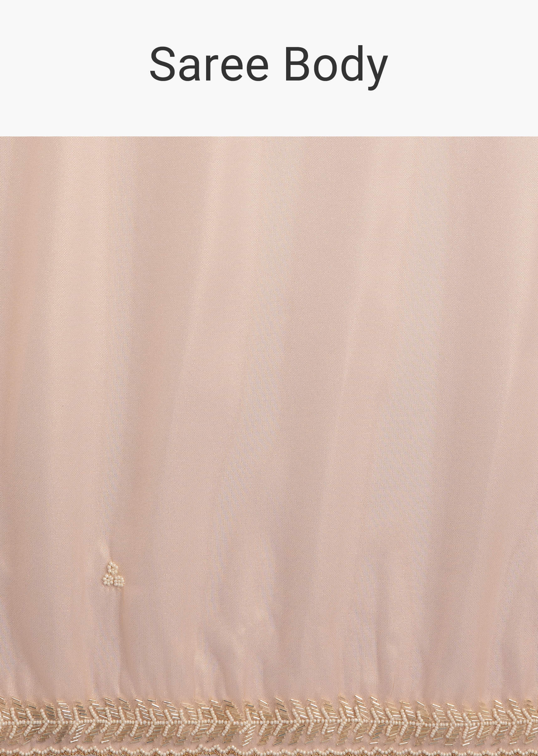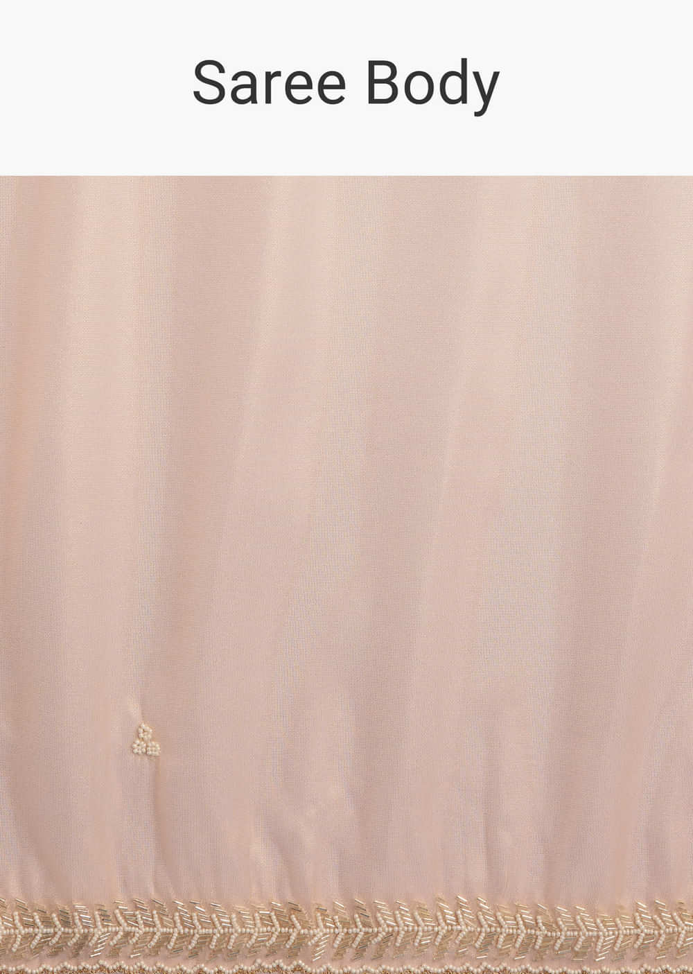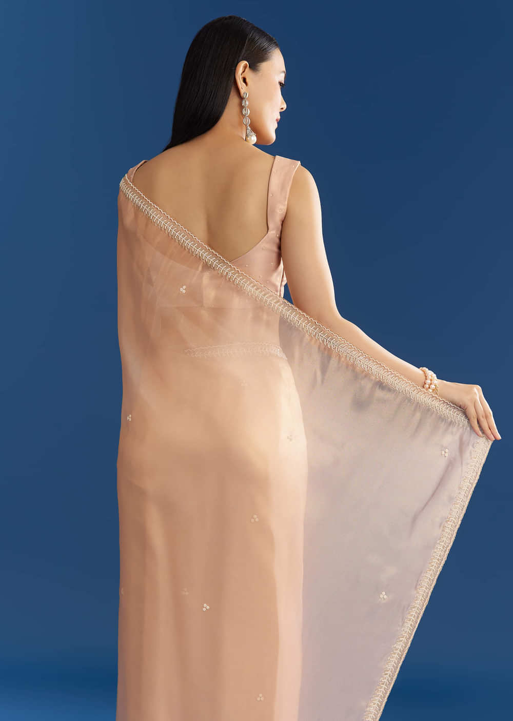 A second take on peach, this organza saree gleams softly with a scalloped edge sewn in cutdana and beads, echoing warmth and grace. Awarded as the Most Trusted Brand, we're delivering styles you love, just as promised.