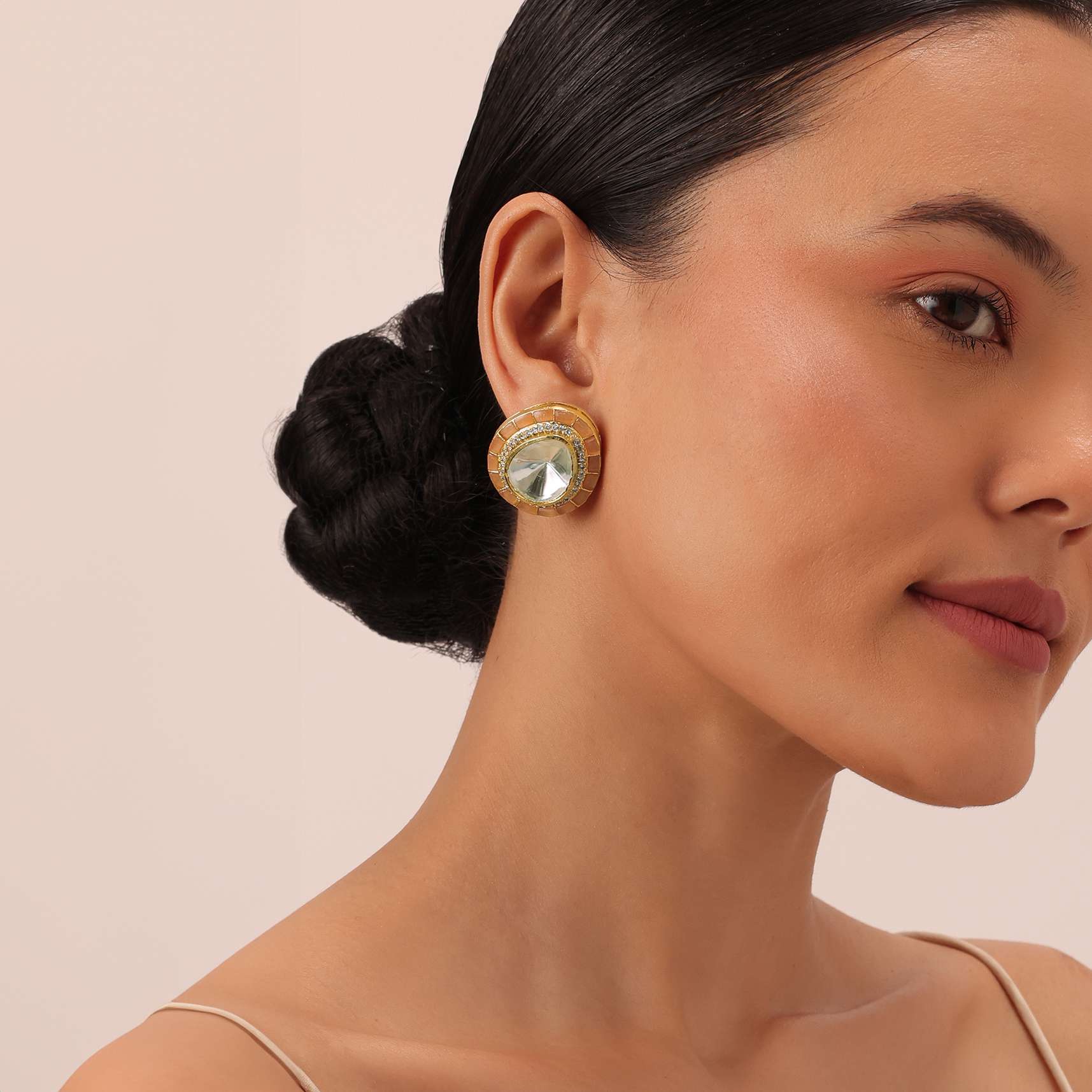 Introducing a one-of-a-kind gold finish statement studs that exude grandeur and elegance. Made using the finest quality mixed metal it displays meticulous craftsmanship. A timeless beauty that is adorned with... More Product Details