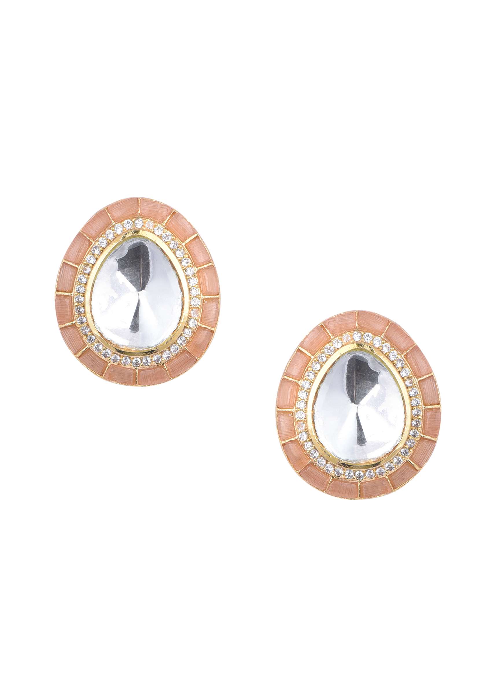Peach Oversized Studs With Meenakari Detail And Studded Polki