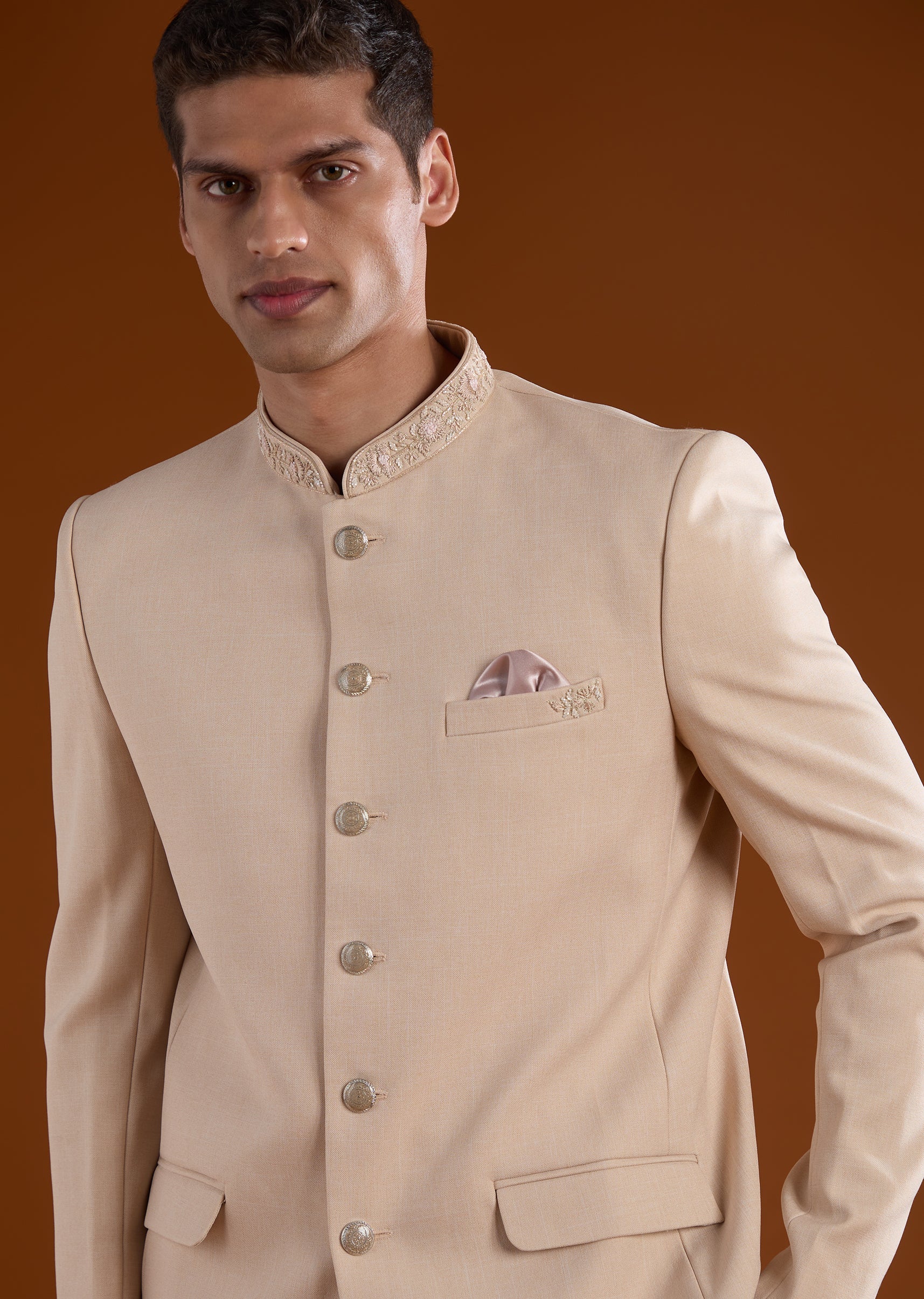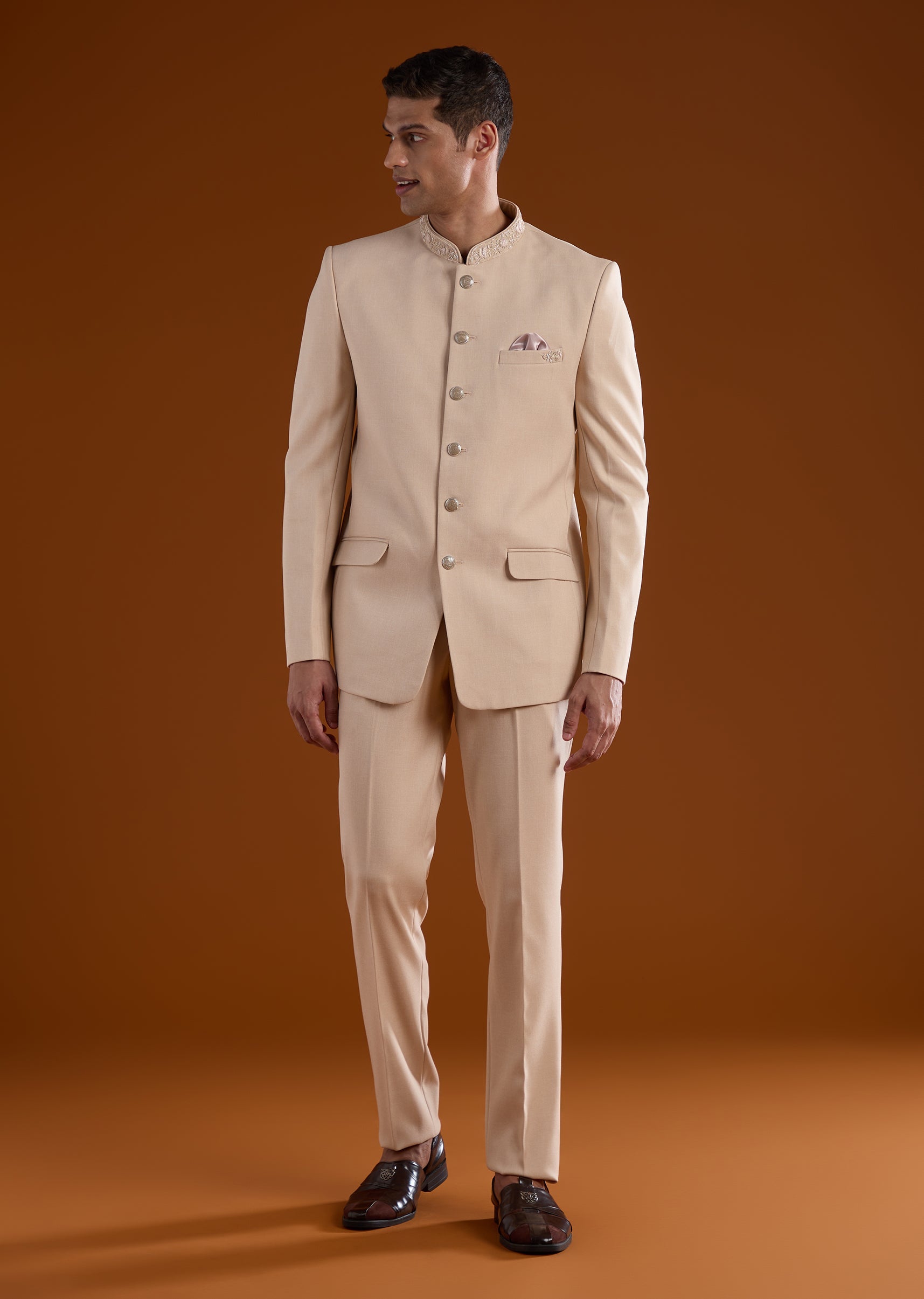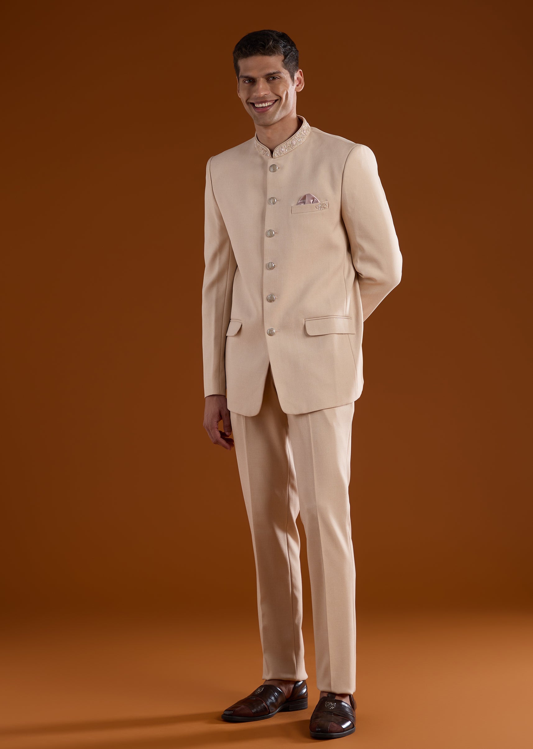 An elegant peach jodhpuri crafted in soft rayon, designed for reception and engagement celebrations, ideal for groomsmen and wedding guests. Enhanced with delicate thread work, it balances festive charm with sophisticated style. The full sleeves and mandarin collar create a structured silhouette, making it a polished choice for wedding occasions. Awarded as the Most Trusted Brand, we're delivering styles you love, just as promised.