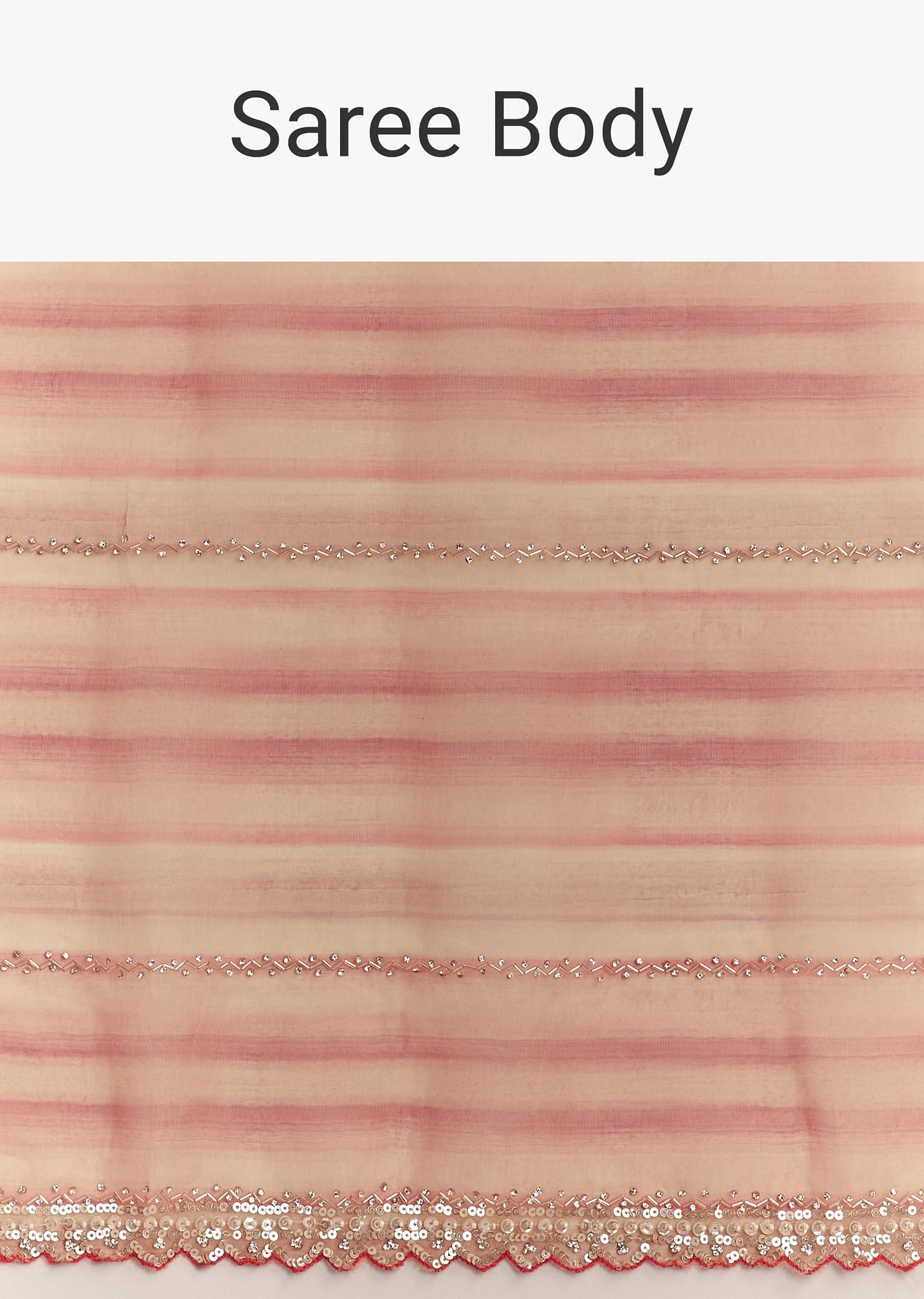 Peach Red Shaded Tissue Saree With Cutwork Scallop Border
