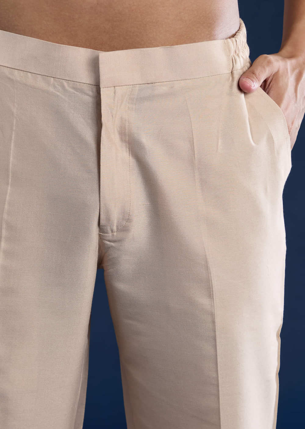A blend of elegance and subtle opulence, this peach silk jacket and kurta set with matching pants exudes refined charm. The soft blend of art silk fabric is beautifully accented... More Product Details