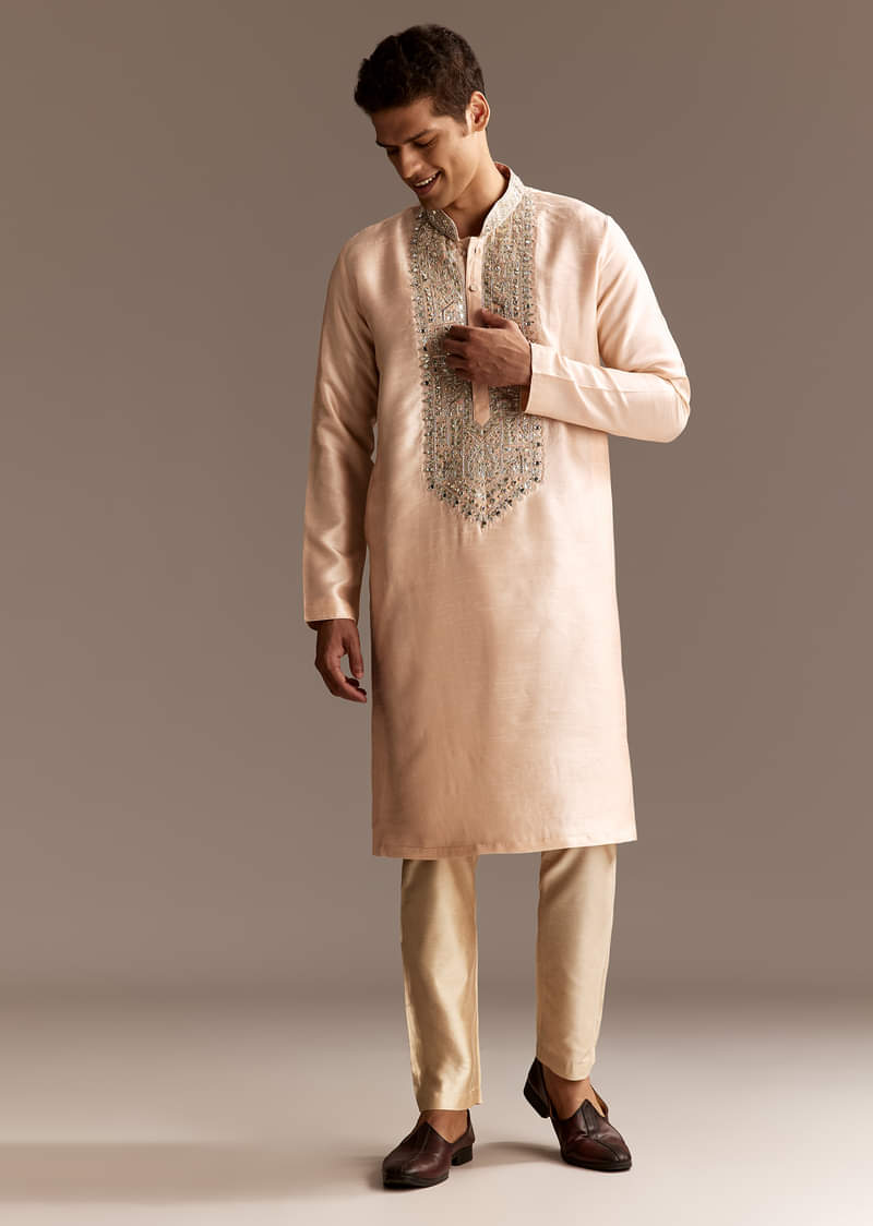 Peach Silk Kurta Set