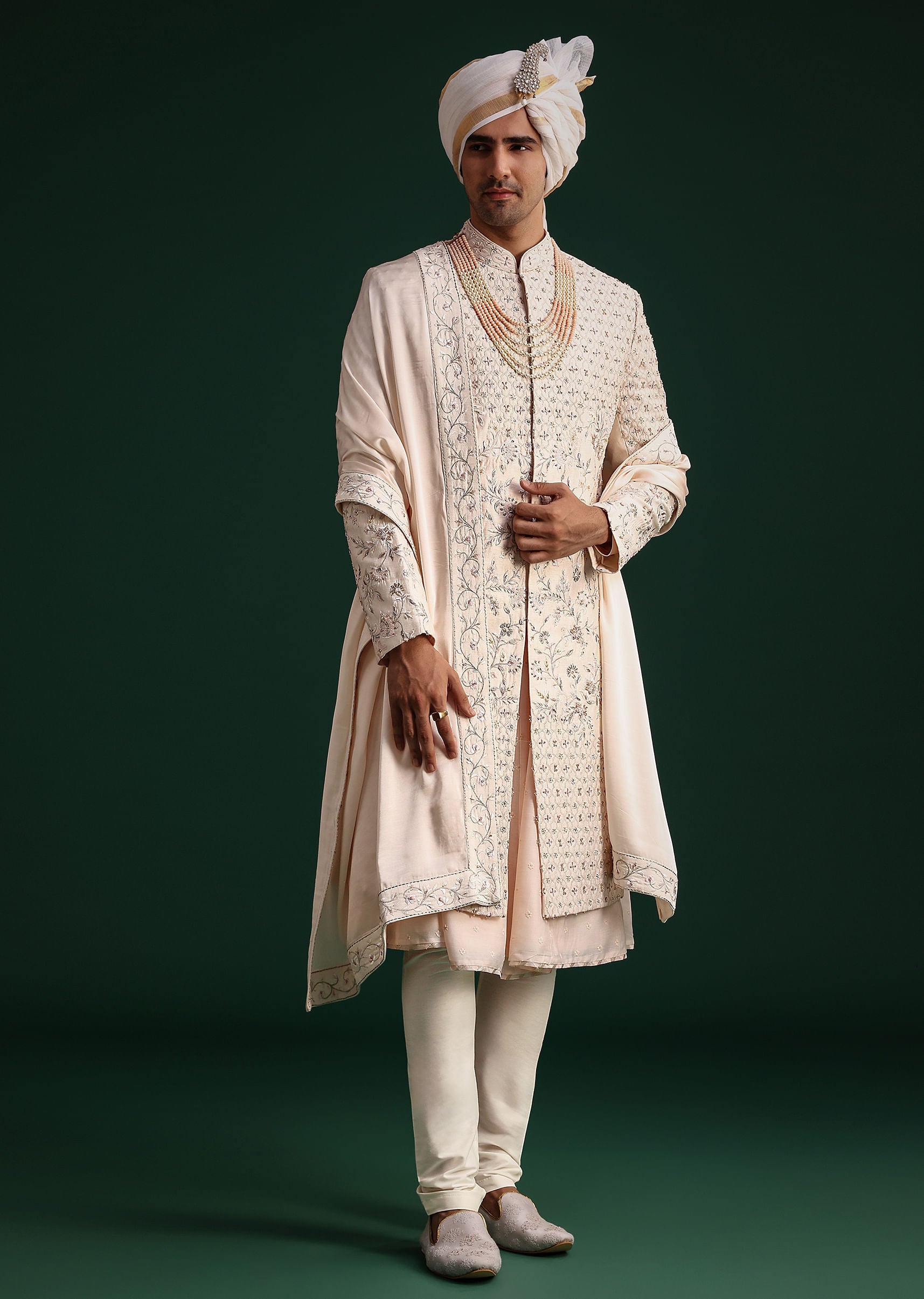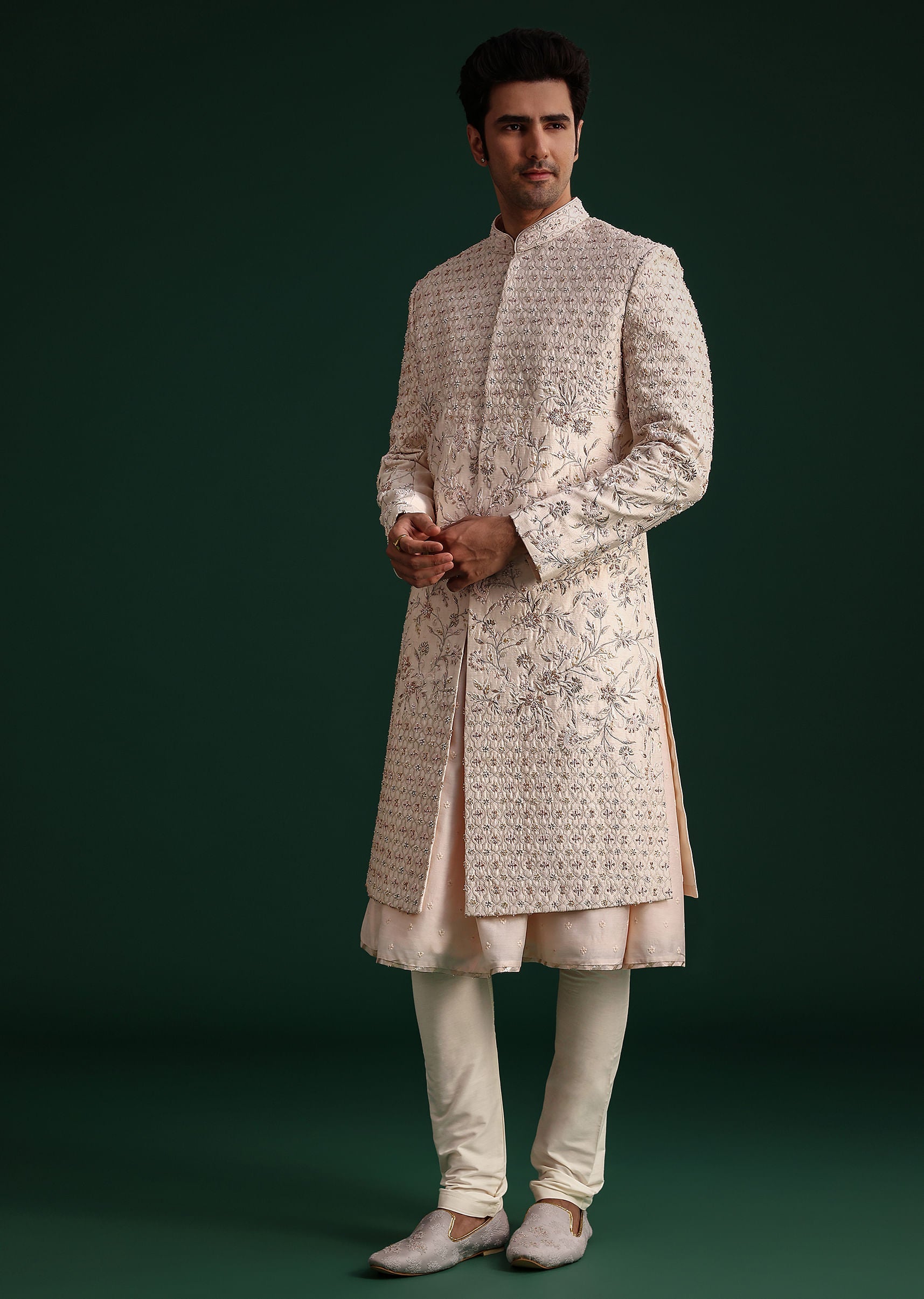 Fit Tips:Opt for a tailored fit to ensure the sherwani drapes seamlessly and complements your physique.
