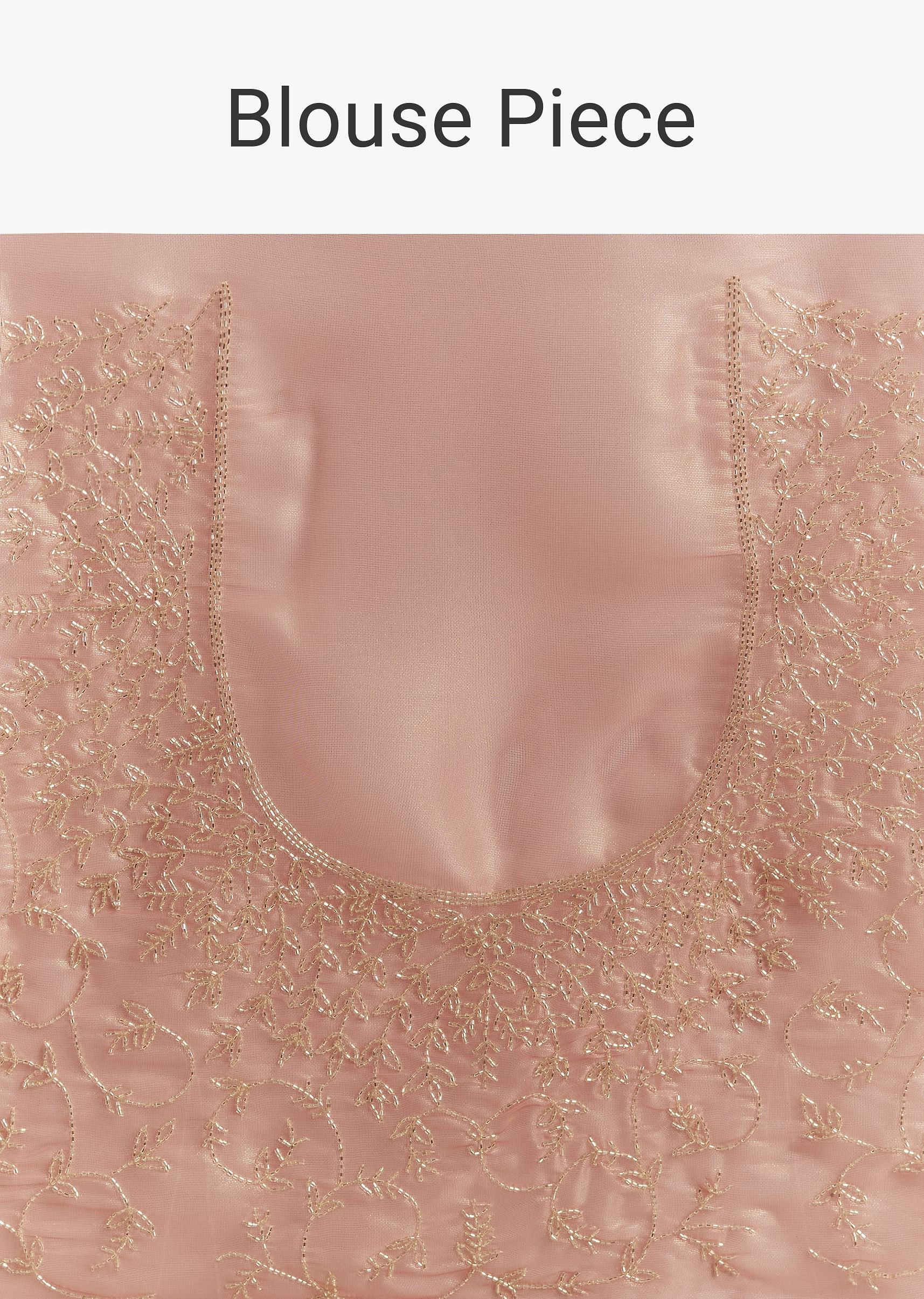 Grace Meets Sophistication In This Peach Tissue Saree Delicately Adorned With Shimmering Stones And Cutdana Embroidery. The Sheer Elegance Of The Tissue Fabric Enhances Its Fluid Drape While The Intricate... More Product Details