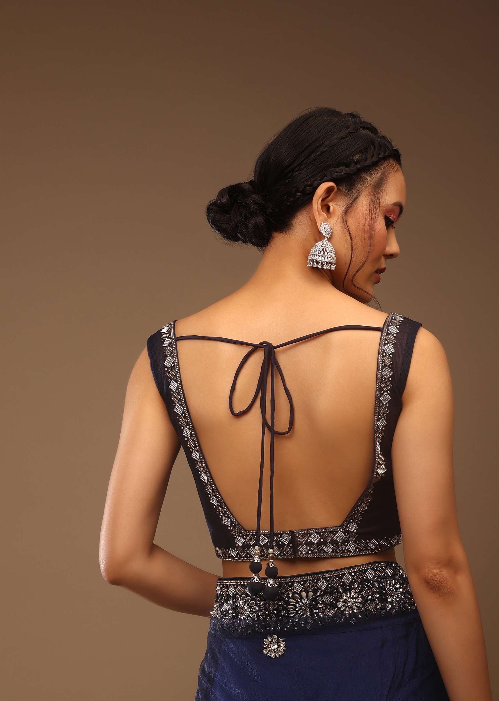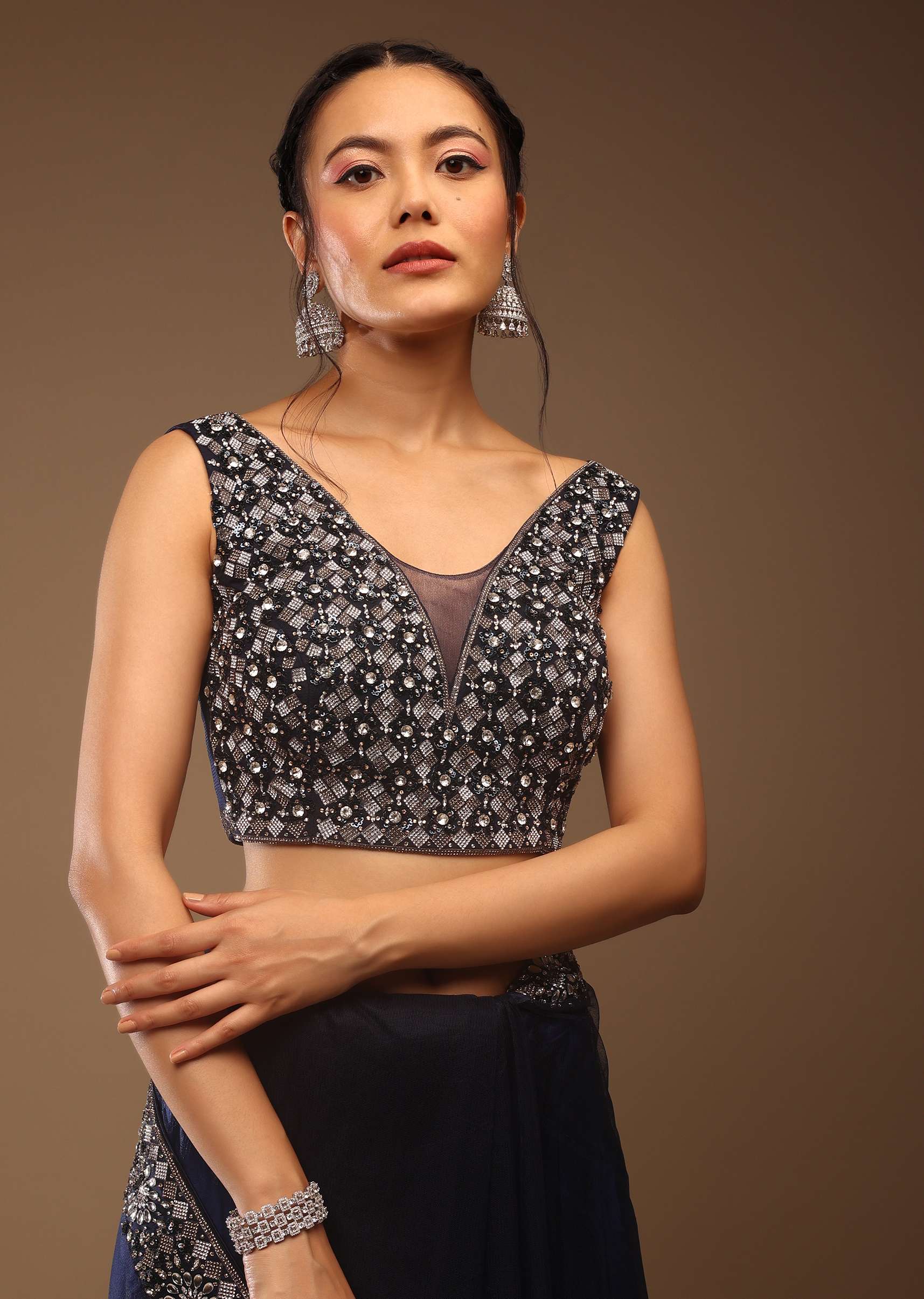 Peacoat Blue Saree With The Crop In Stones Embellishment
