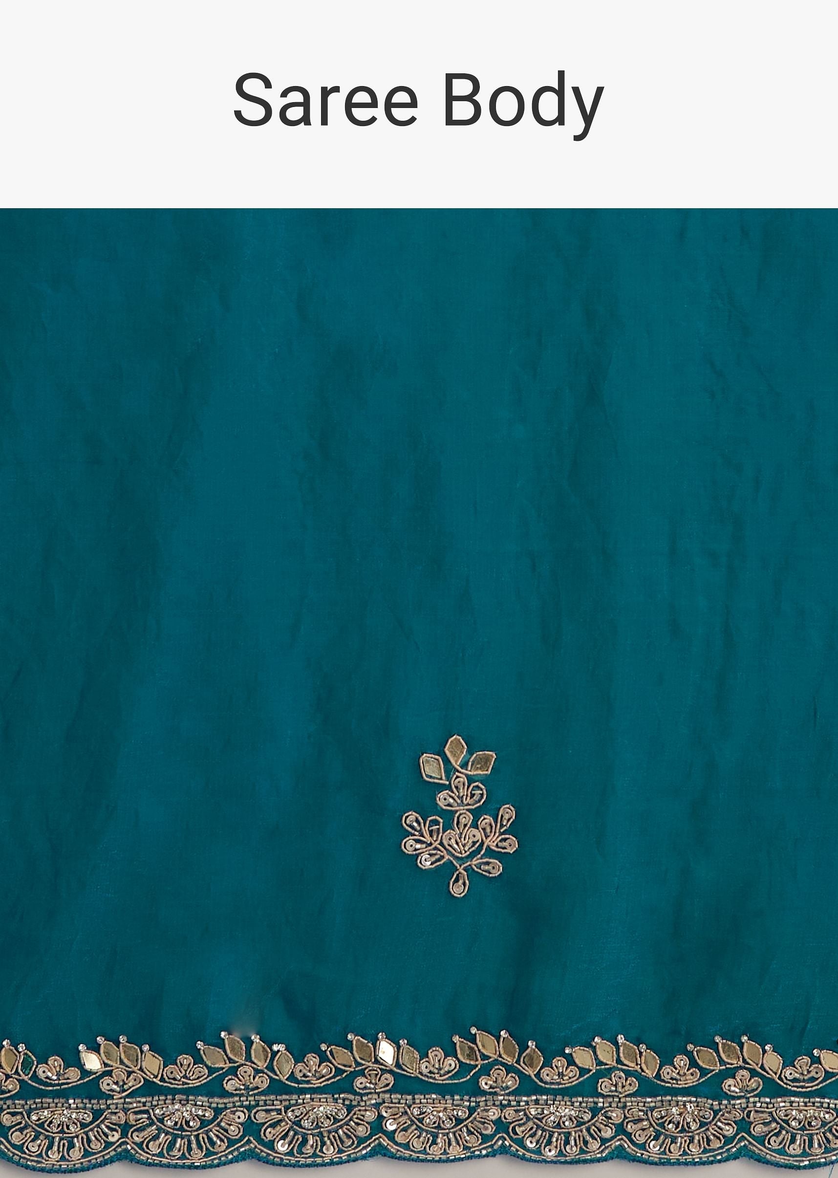 Peacock Blue Satin Saree With Gota Patti Embroidery And Scallop Border