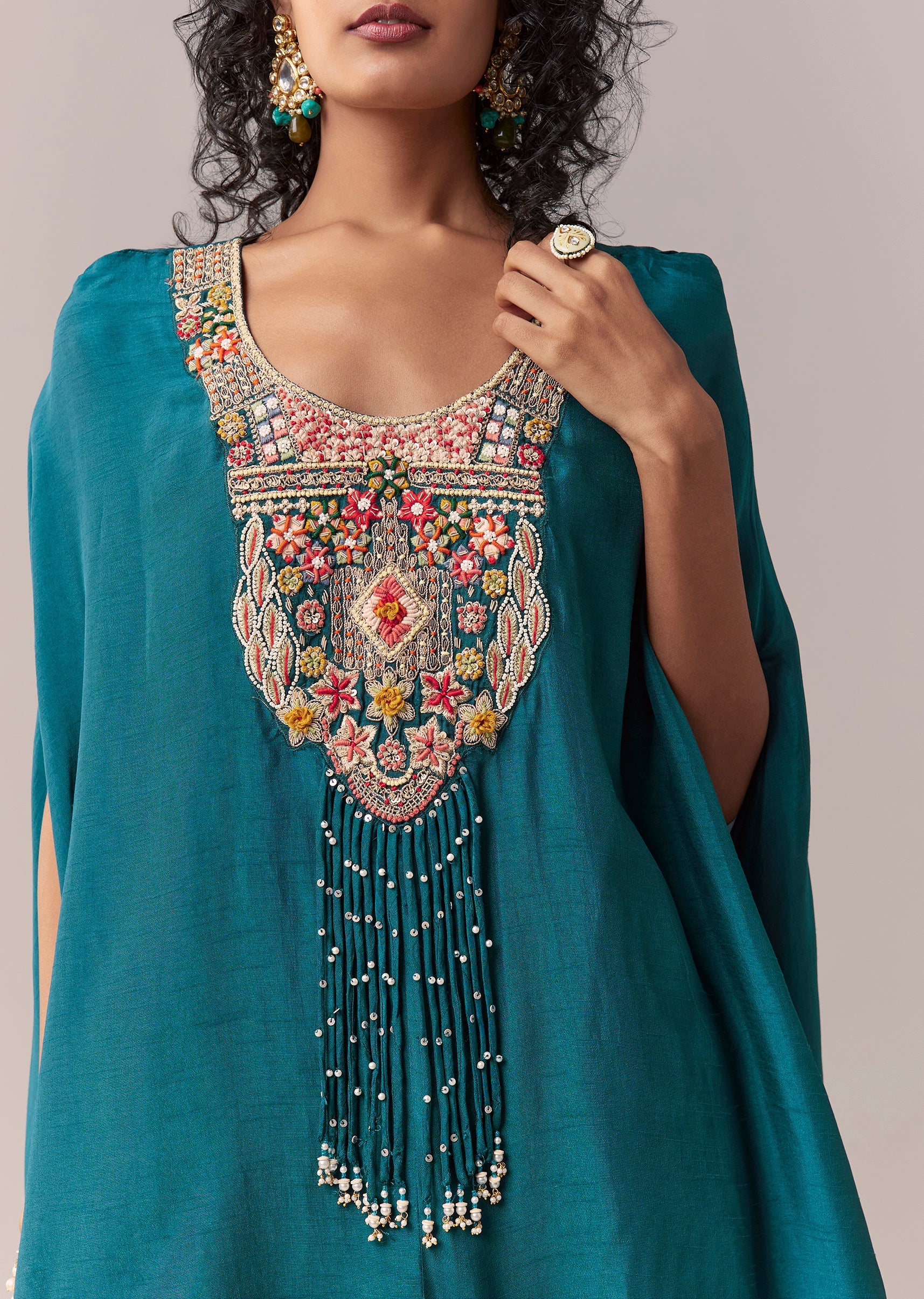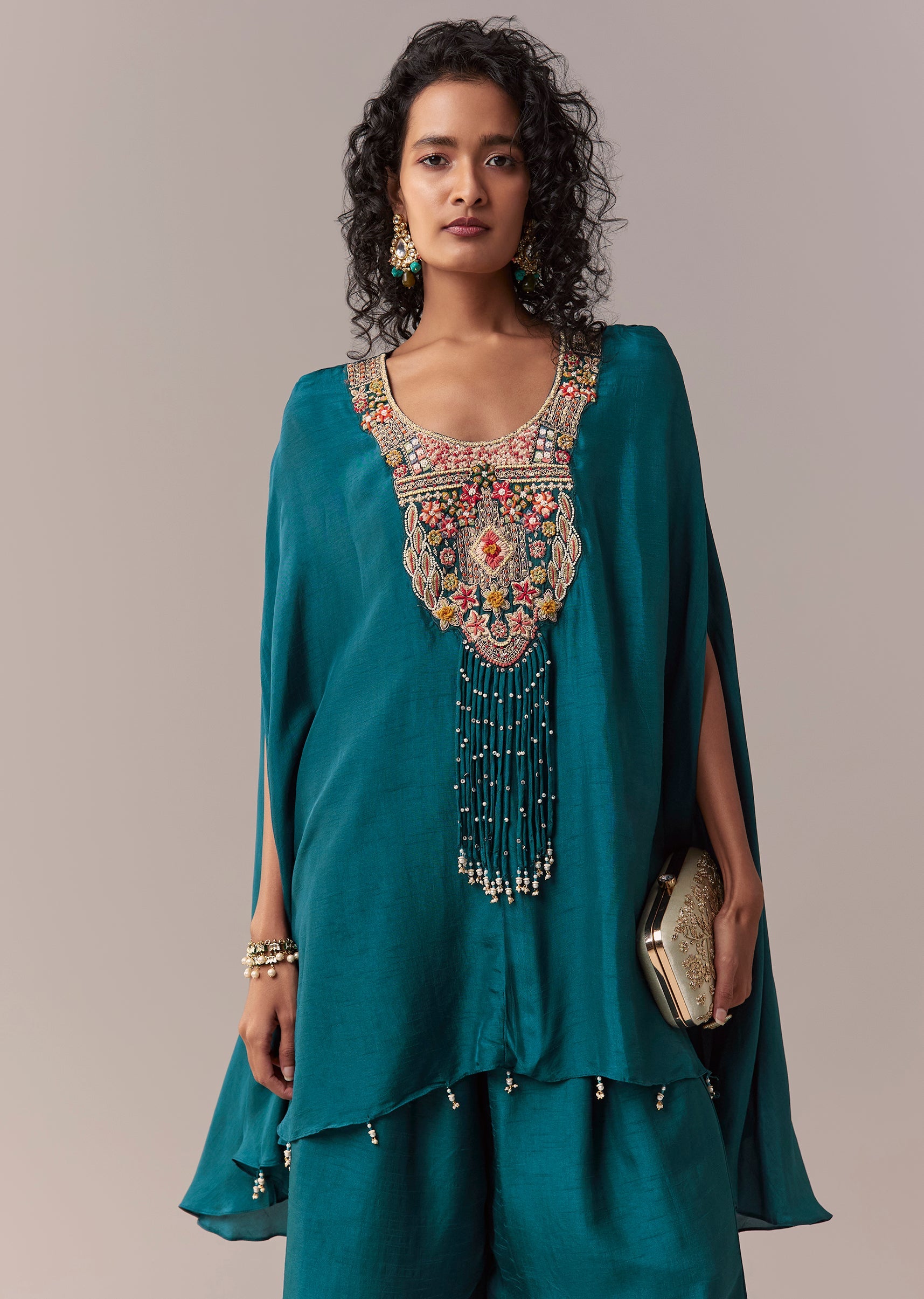 Peacock Blue Silk Cape Co-ord Set