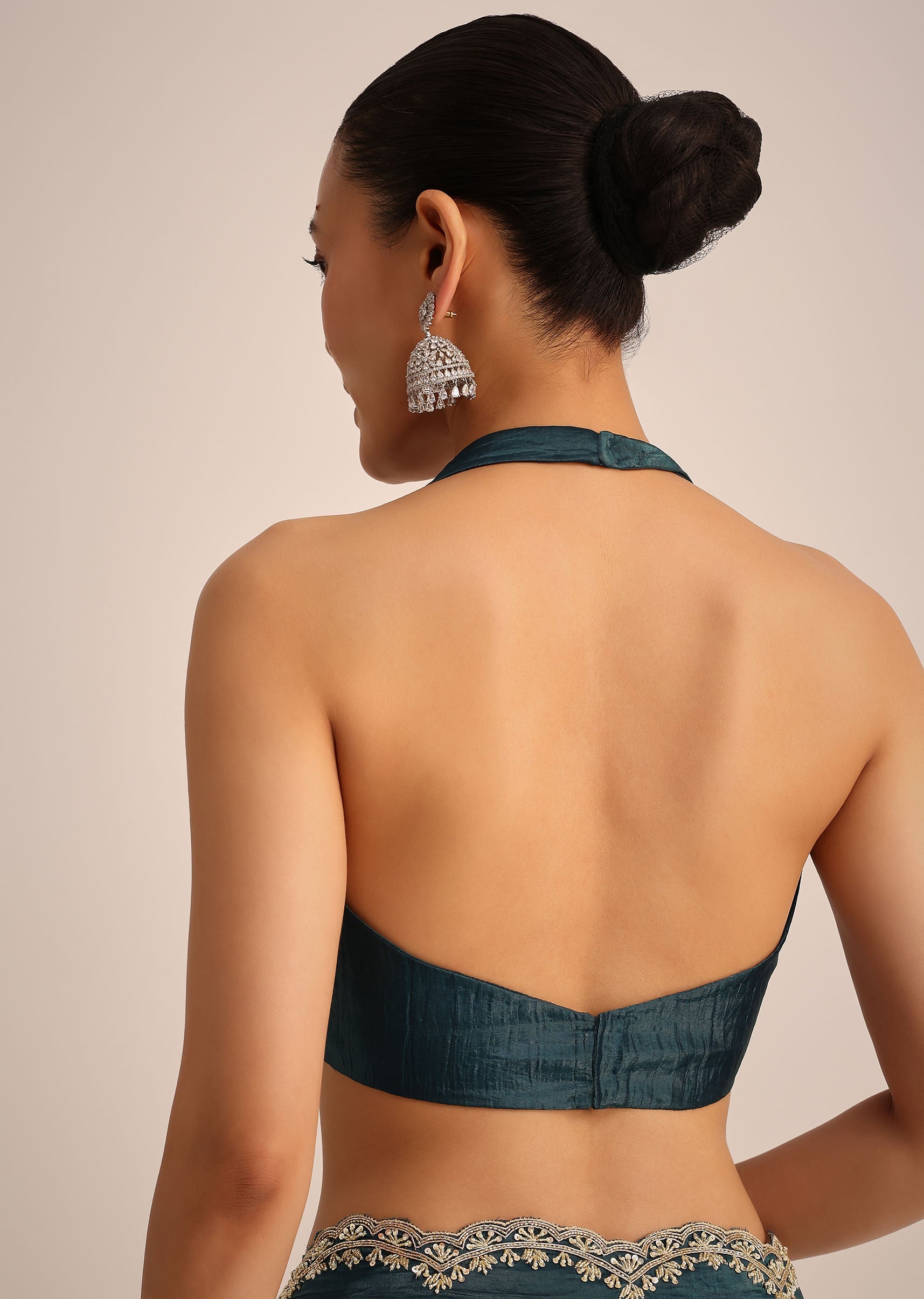 Exude grace in this peacock blue crush tissue saree, adorned with a sparkling sequin and cutdana border that captures and reflects the light in a mesmerizing way. The unstitched blouse... More Product Details