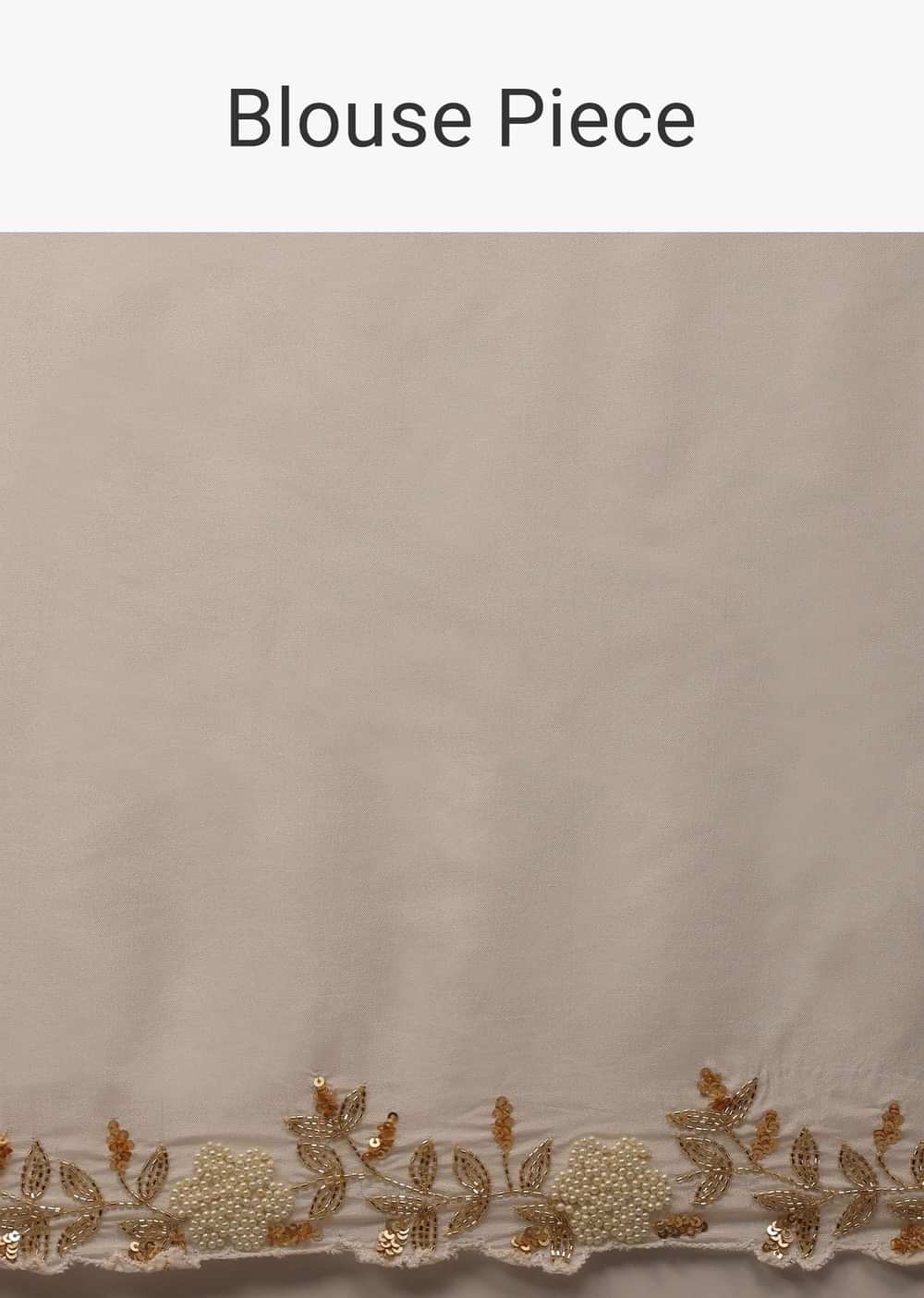 Pearl White Embroidered Organza Saree With Floral Print And Scallop Borders