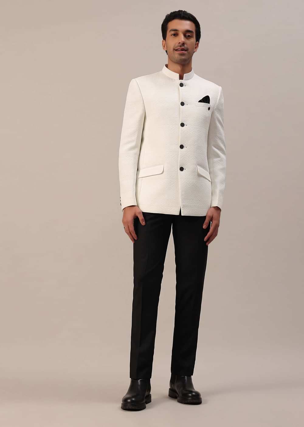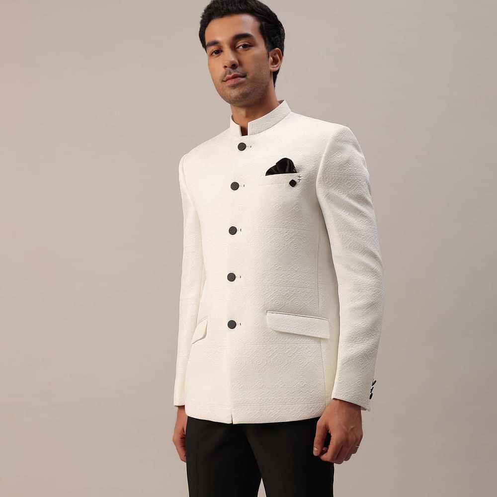 Presenting our pearl white textured polyester viscose Jodhpuri Suit, a paragon of understated elegance. This ensemble embodies simplicity at its finest, offering a timeless look that exudes sophistication and charm. The set comes with matching trousers.EVENT - Perfect for receptions.Change folds regularly. Awarded as the Most Trusted Brand, we're delivering styles you love, just as promised.