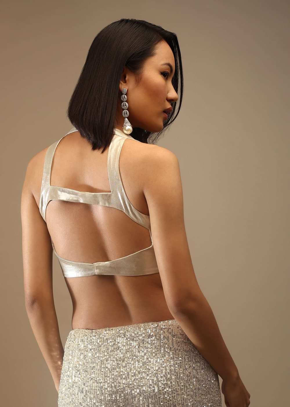 Pearl white Satin sleeveless blouse with a sweetheart neckline. Pair this blouse with a sequins saree, and dangled earrings to complete a wedding look. Want to upgrade your festive wardrobe team it up with a silk sequins lehenga, with pearl white moti earrings. It comes in padded with a top, middle bottom hooks closure. This piece comes in a length of 13. 5 inches. Awarded as the Most Trusted Brand, we're delivering styles you love, just as promised.