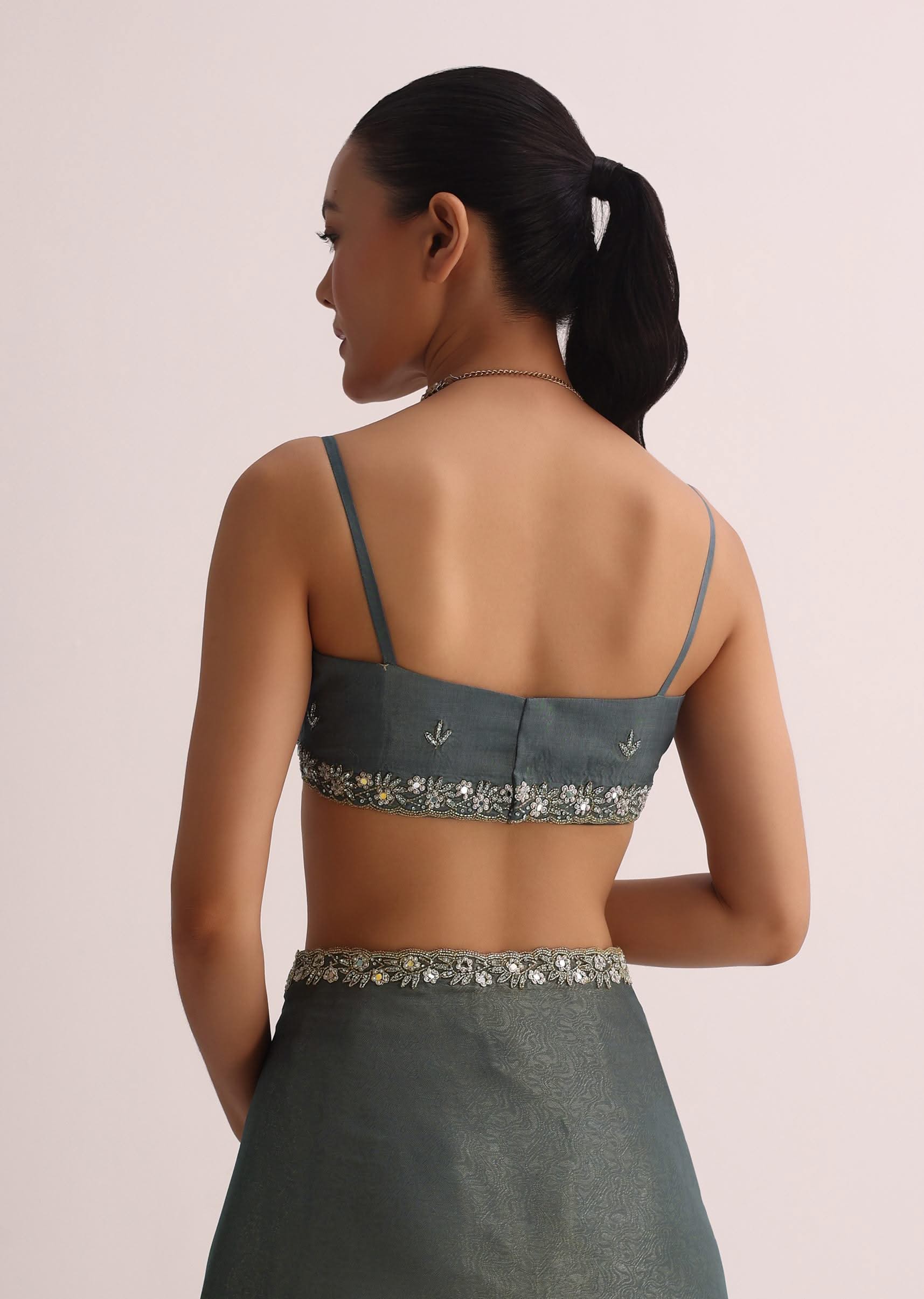 Pencil Grey Saree With Embroidered Border And Unstitched Blouse