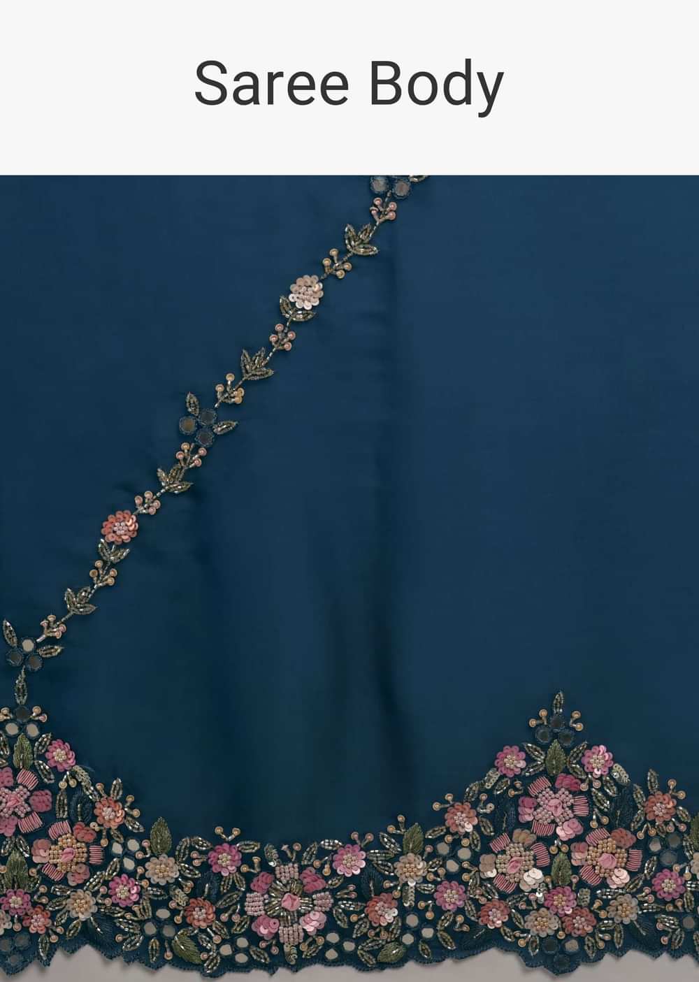 Persian Blue 3D Embroidered Saree In Tissue Silk