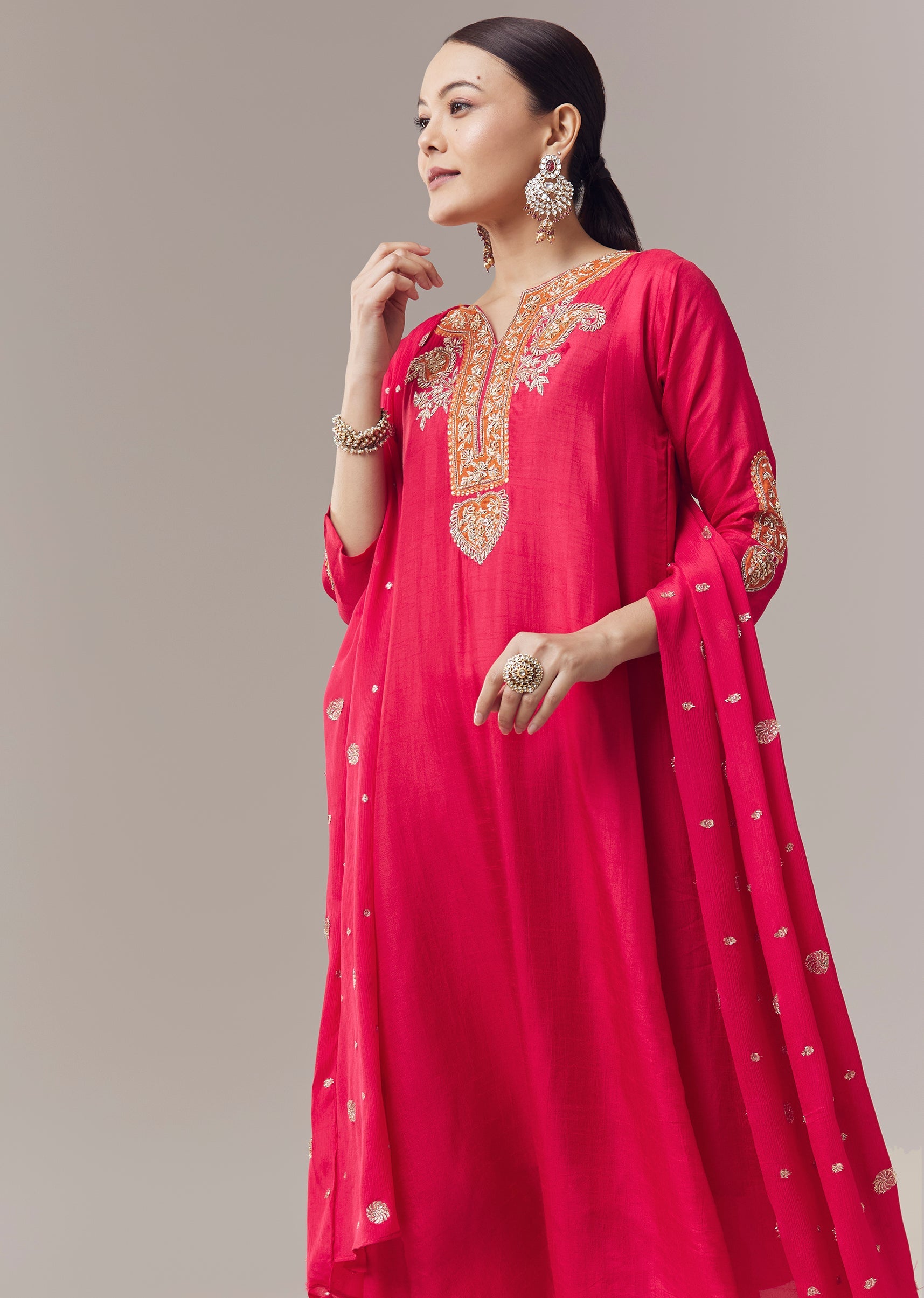 Pink Anarkali Suit With Color Pop Embroidery And Dupatta