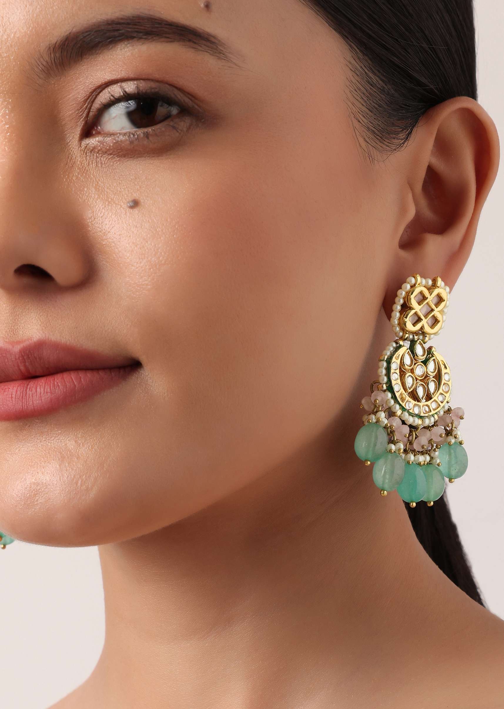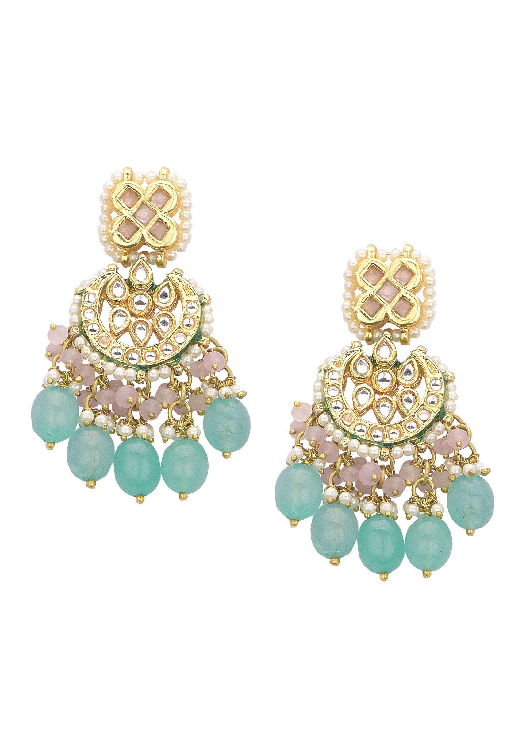 Featuring our opulent pendant necklace set that helps you exude regal vibes everywhere you go. Made from high quality mix metal, it is enhanced on a gold finish base. Showcasing meticulous craftsmanship, it is encrusted with aqua tone meenakari work. Paired with matching crescent motif danglers, this stunner is accentuated with glitzy kundan. Avoid contact with water, chemicals, harsh liquids, perfumes, etc. Do not wear this piece of jewelry while showering, gymming, swimming, etc. Please keep the product away from moisture and humidity when not in use. Slight variations in design may vary. Being rewarded as the most trusted brand, our customers believe we deliver the same styles as promised on the website. Awarded as the Most Trusted Brand, we're delivering styles you love, just as promised.