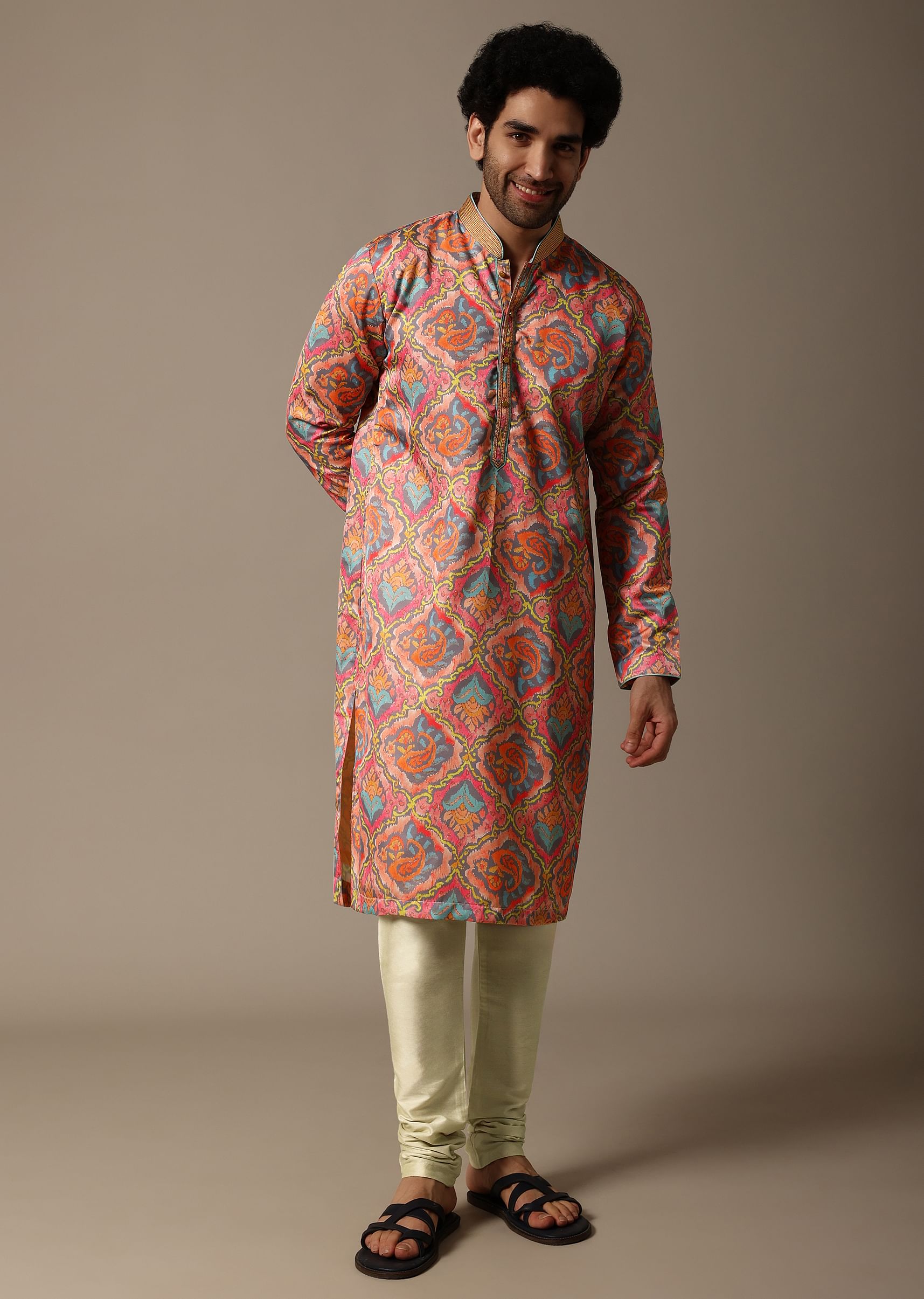 Explore the enchanting allure of our pink and grey kurta set an ideal ensemble for festive occasions and celebratory moments. Crafted from sumptuous silk and adorned with intricate prints this outfit epitomizes timeless beauty and captivating allure. Paired flawlessly with coordinating bottom it promises to captivate with its enduring elegance and distinctive charm. Awarded as the Most Trusted Brand, we're delivering styles you love, just as promised.