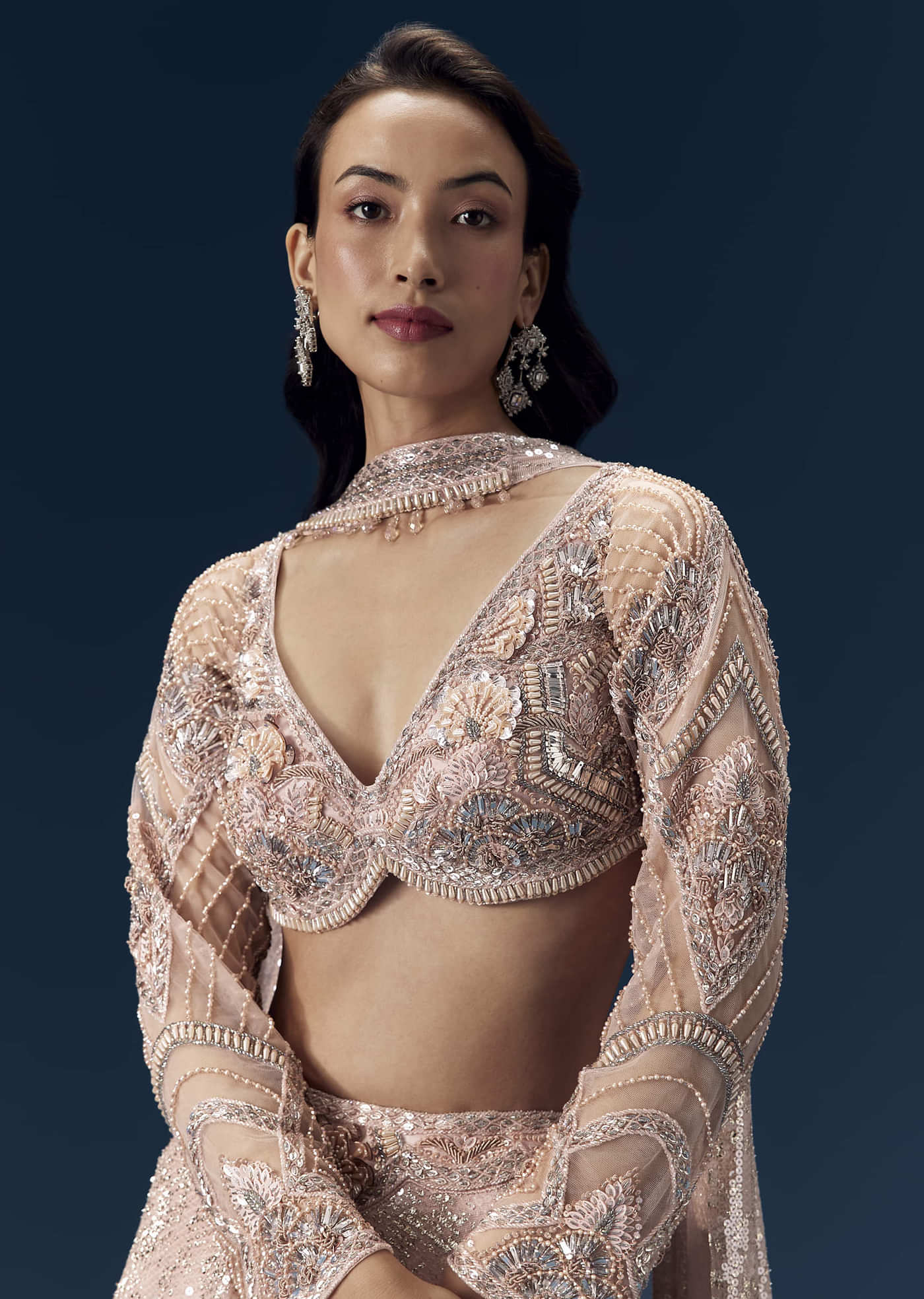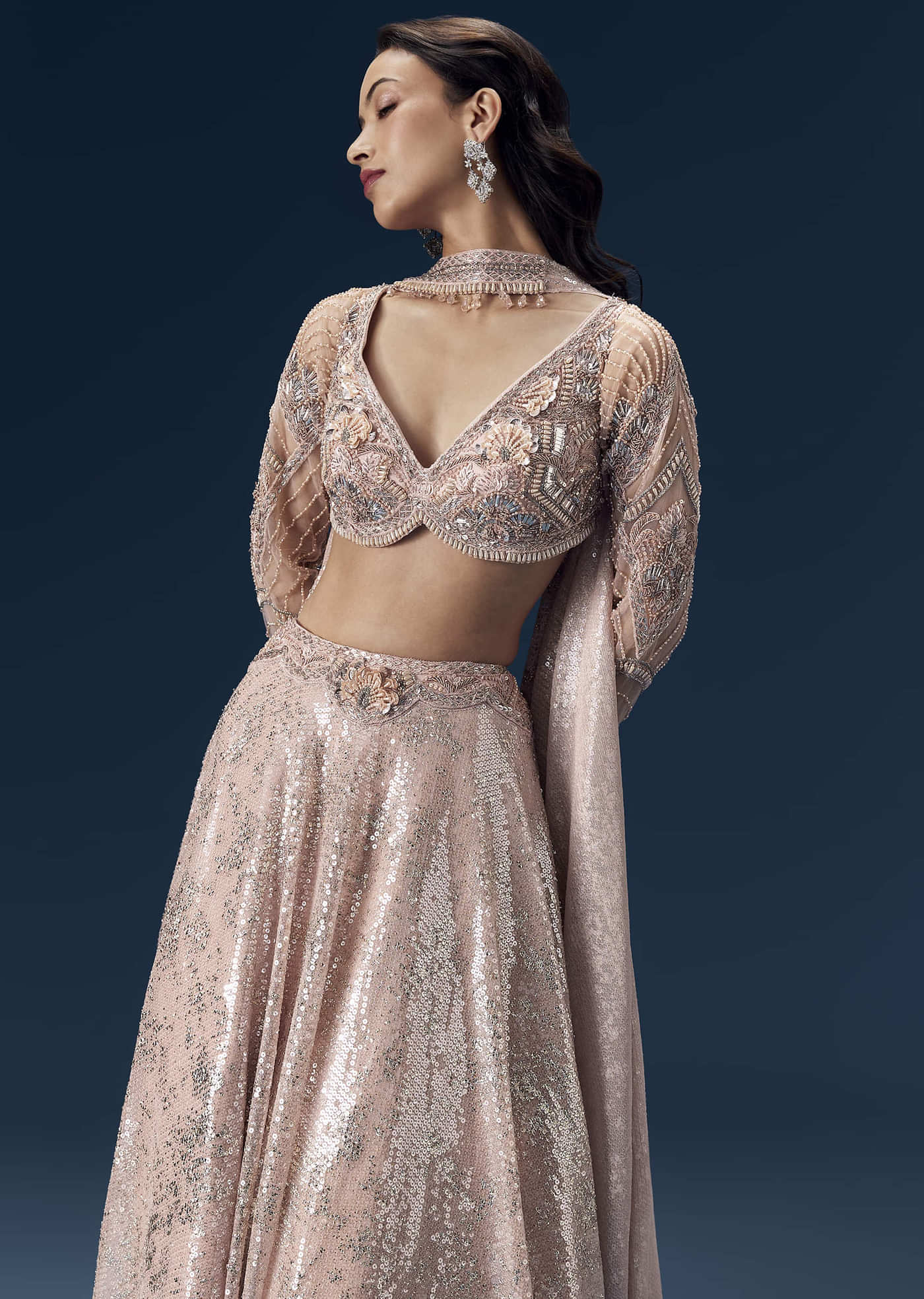 Designed for the modern bridesmaid, this pink lehenga set exudes romantic elegance with a contemporary twist. Intricately embellished with sequins and cutdana work, the ensemble sparkles beautifully with every movement.... More Product Details