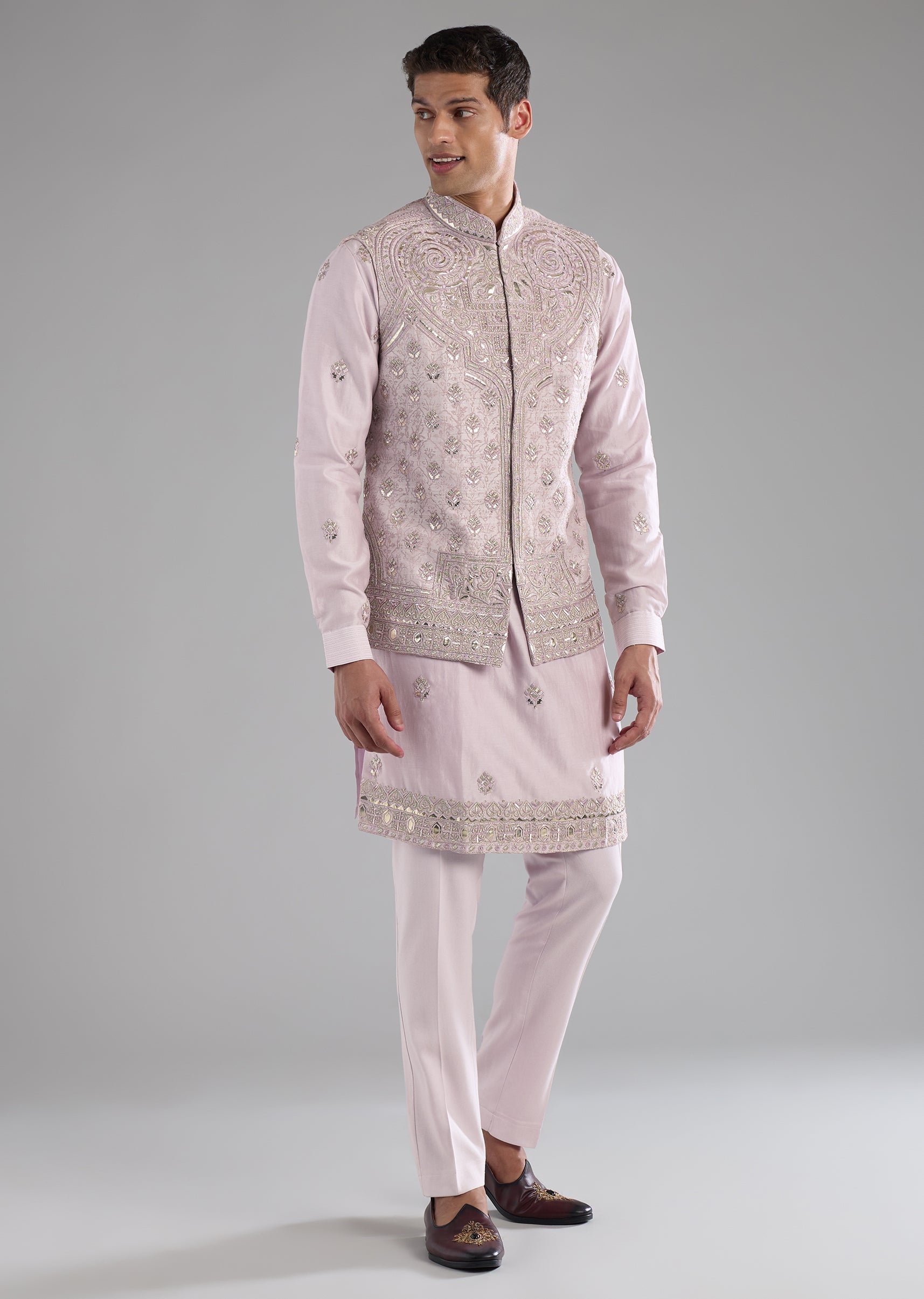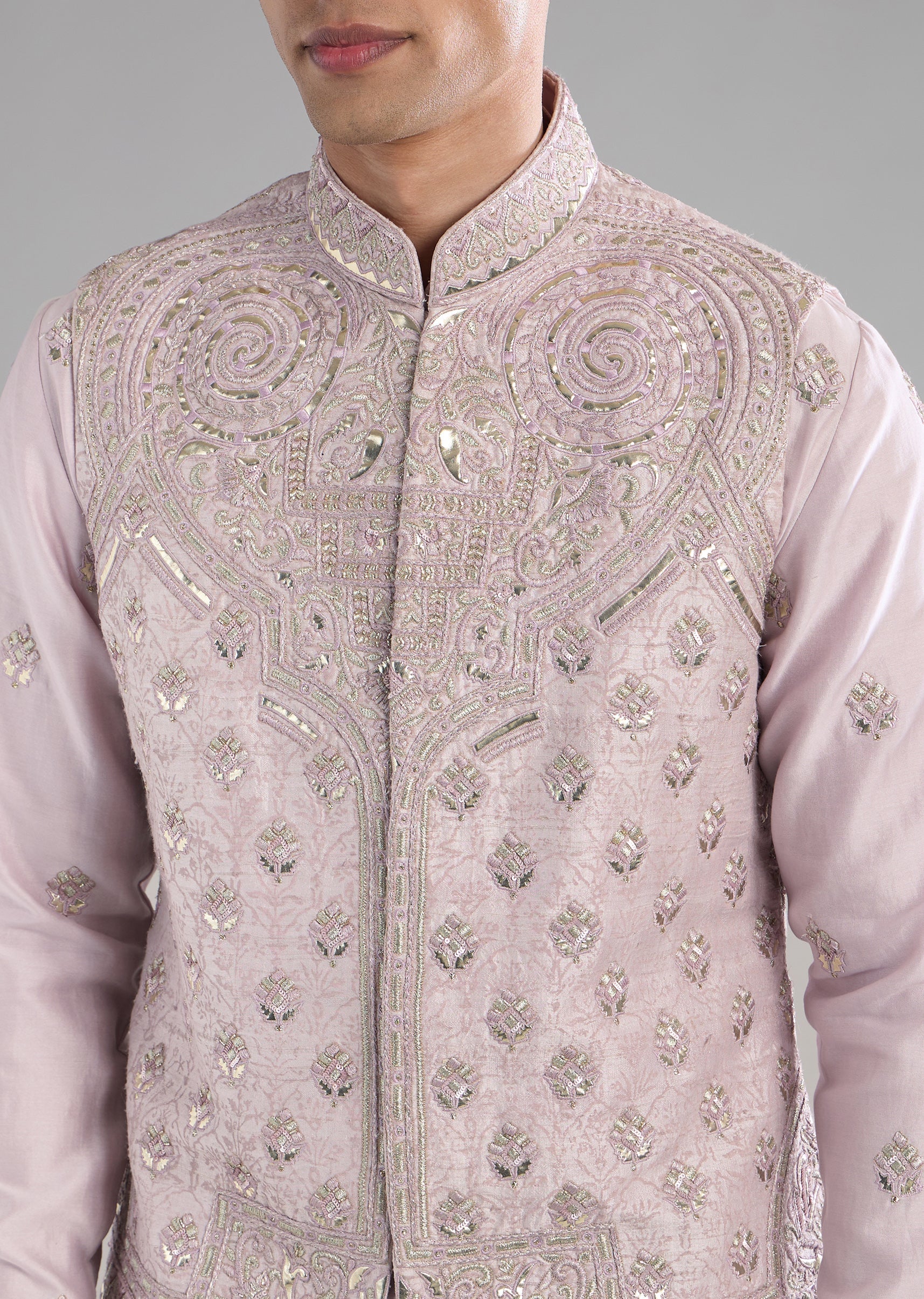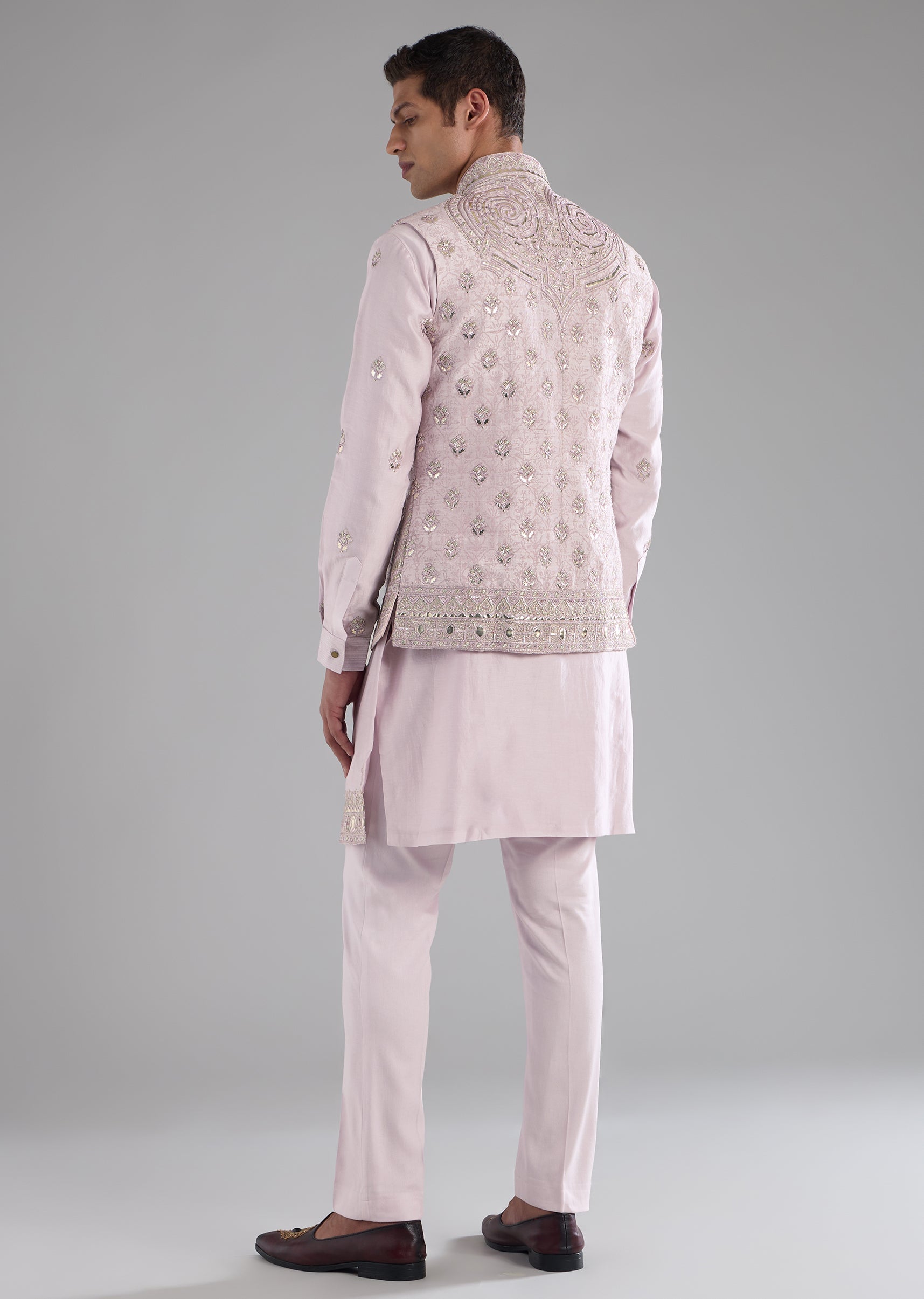 Pink Chanderi Jacket Kurta Set with Resham Work