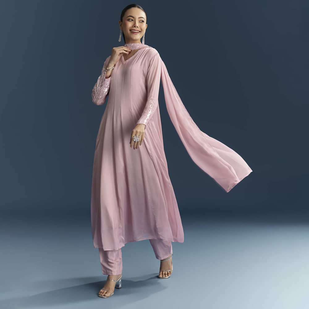 Pink Chinon Anarkali Suit With Sequins Work