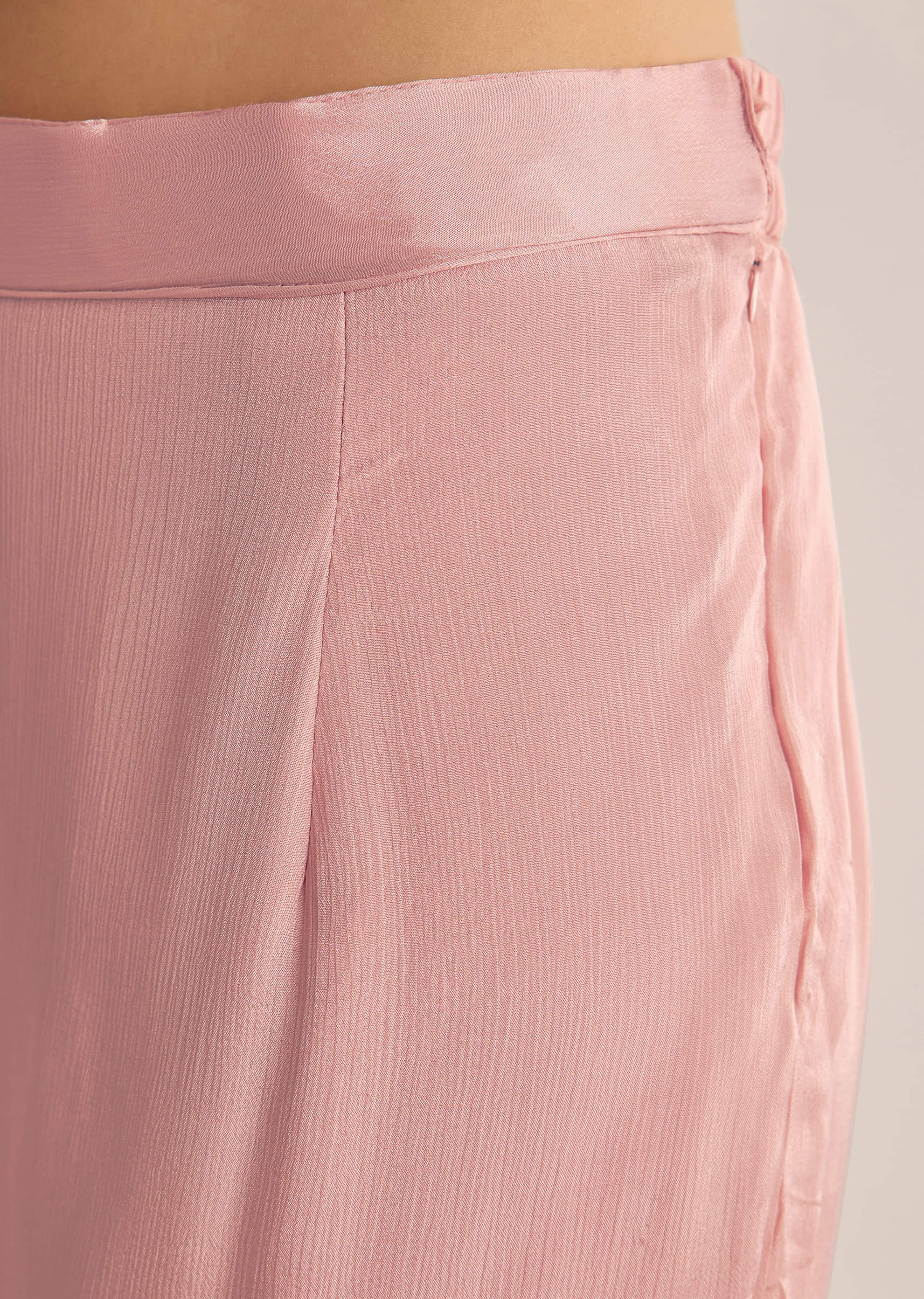 A playful pink chinon kurta adorned with cutdana and moti detailing, finished with a choker-style dupatta. Ideal for joyful mehendi or sangeet occasions. Like rose petals in dance.Awarded as the... More Product Details