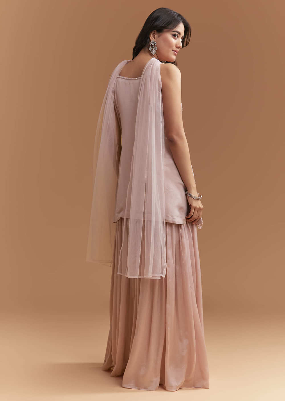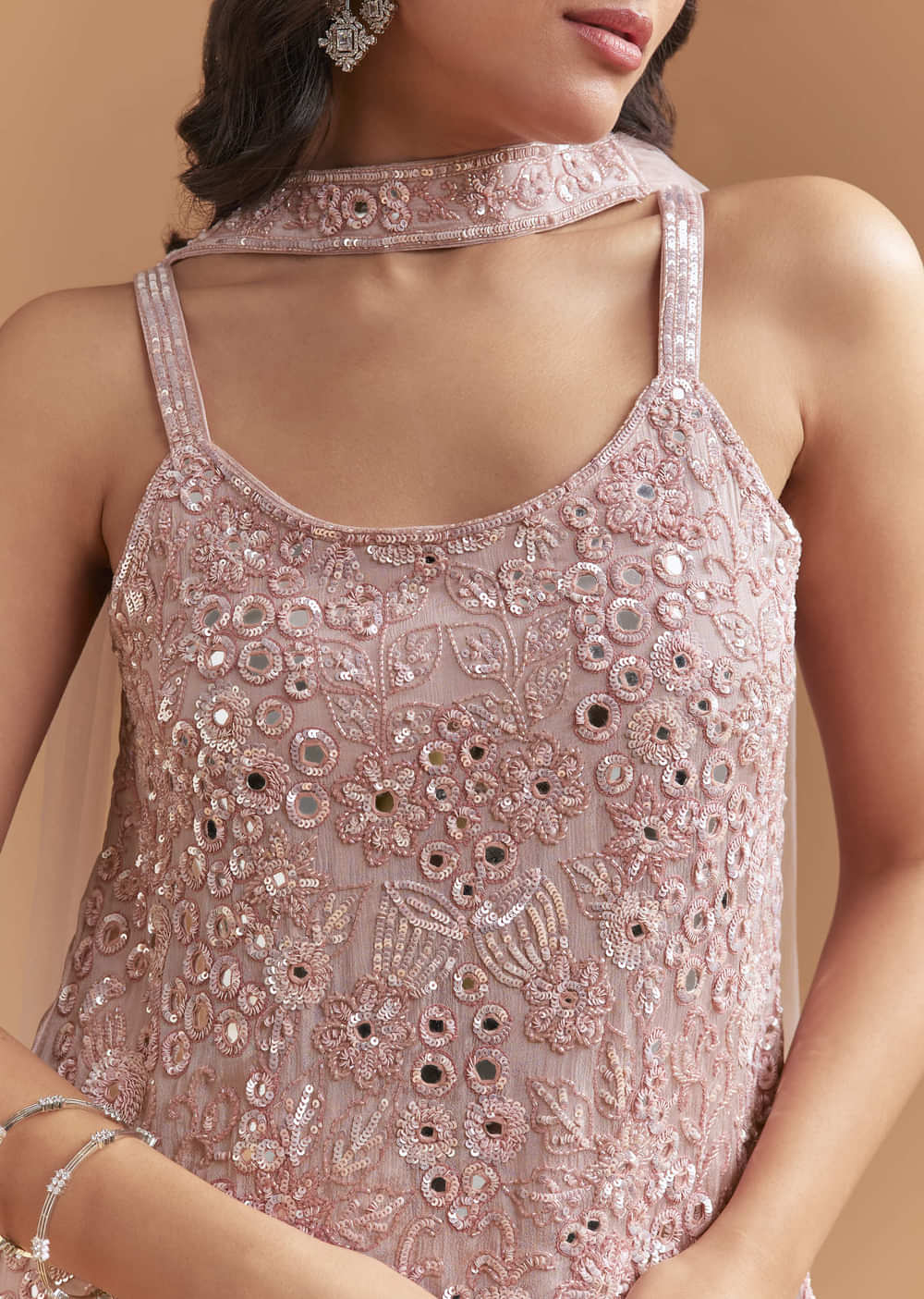 Pink Chinon Palazzo Suit With Intricate Hand Embroidery