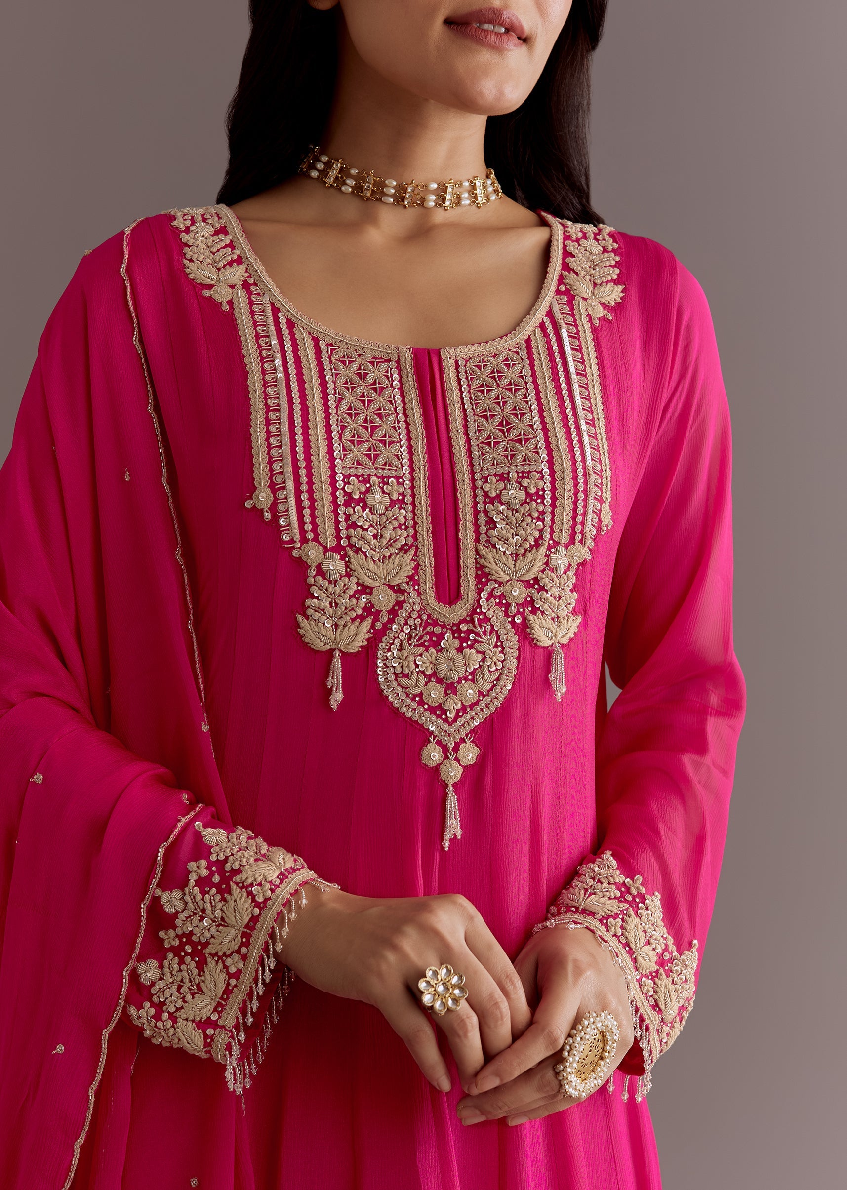 Pink Chinon Thread Sequin Embroidered Anarkali Dupatta Suit
