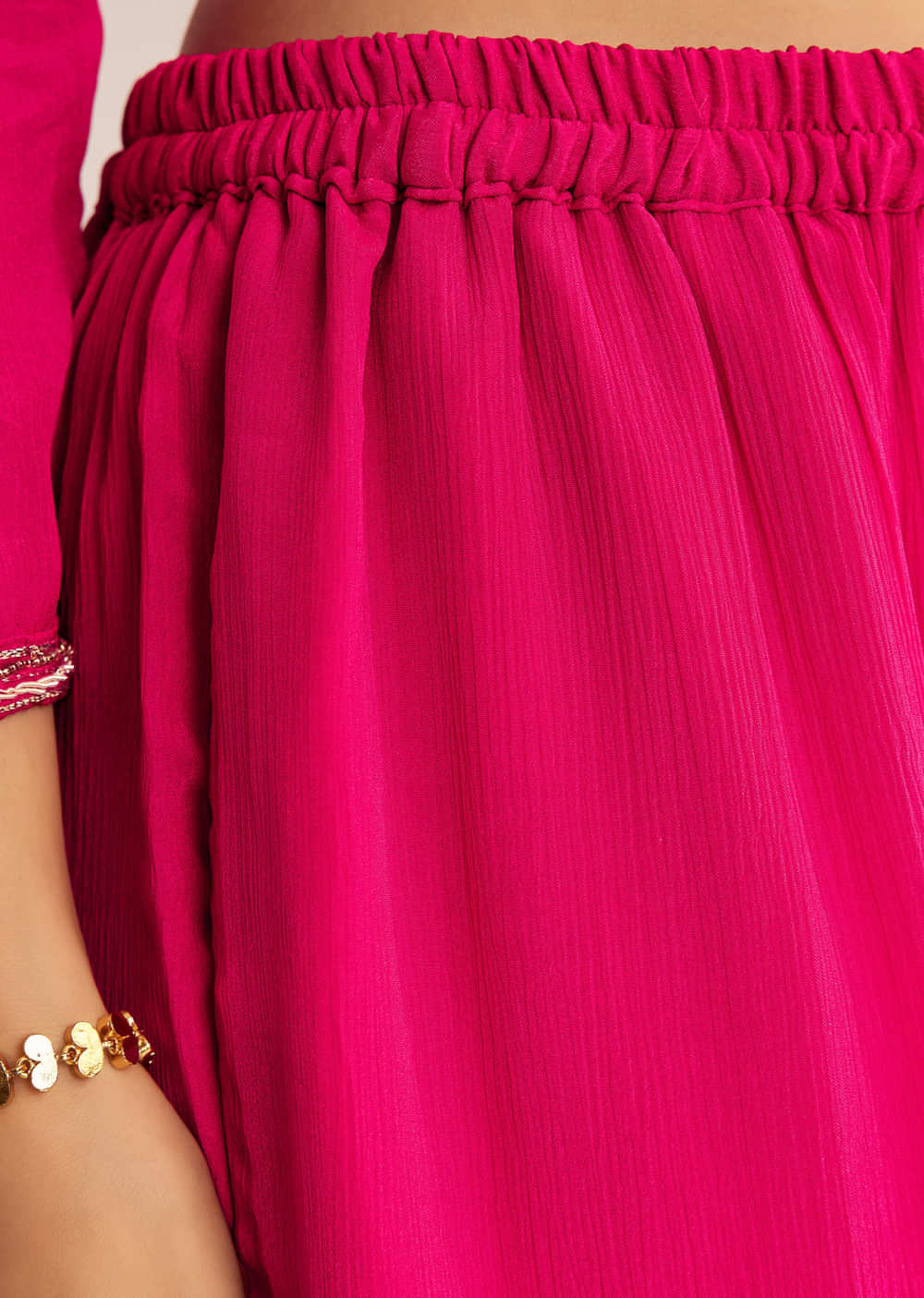 Pink Chinon Zardosi Work Kurta Palazzo Suit