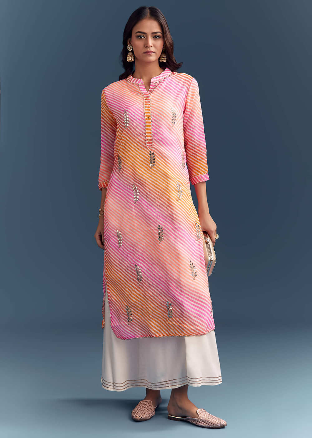 When you want colour with comfort, this pink cotton kurti brings leheriya stripes and neat gota highlights you can wear all day. The breathable fabric makes it an easy pick... More Product Details