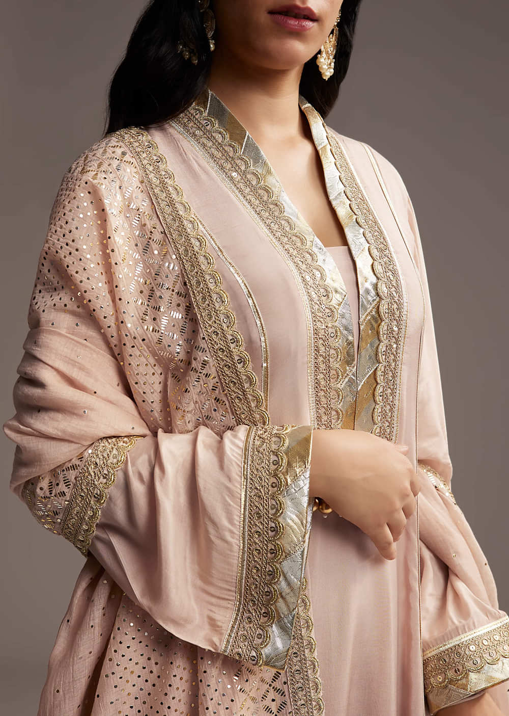 This pink cotton silk anarkali suit carries the spirit of celebration in every fold. With its soft color, intricate gotta work, and matching potli, it is made for evenings filled... More Product Details