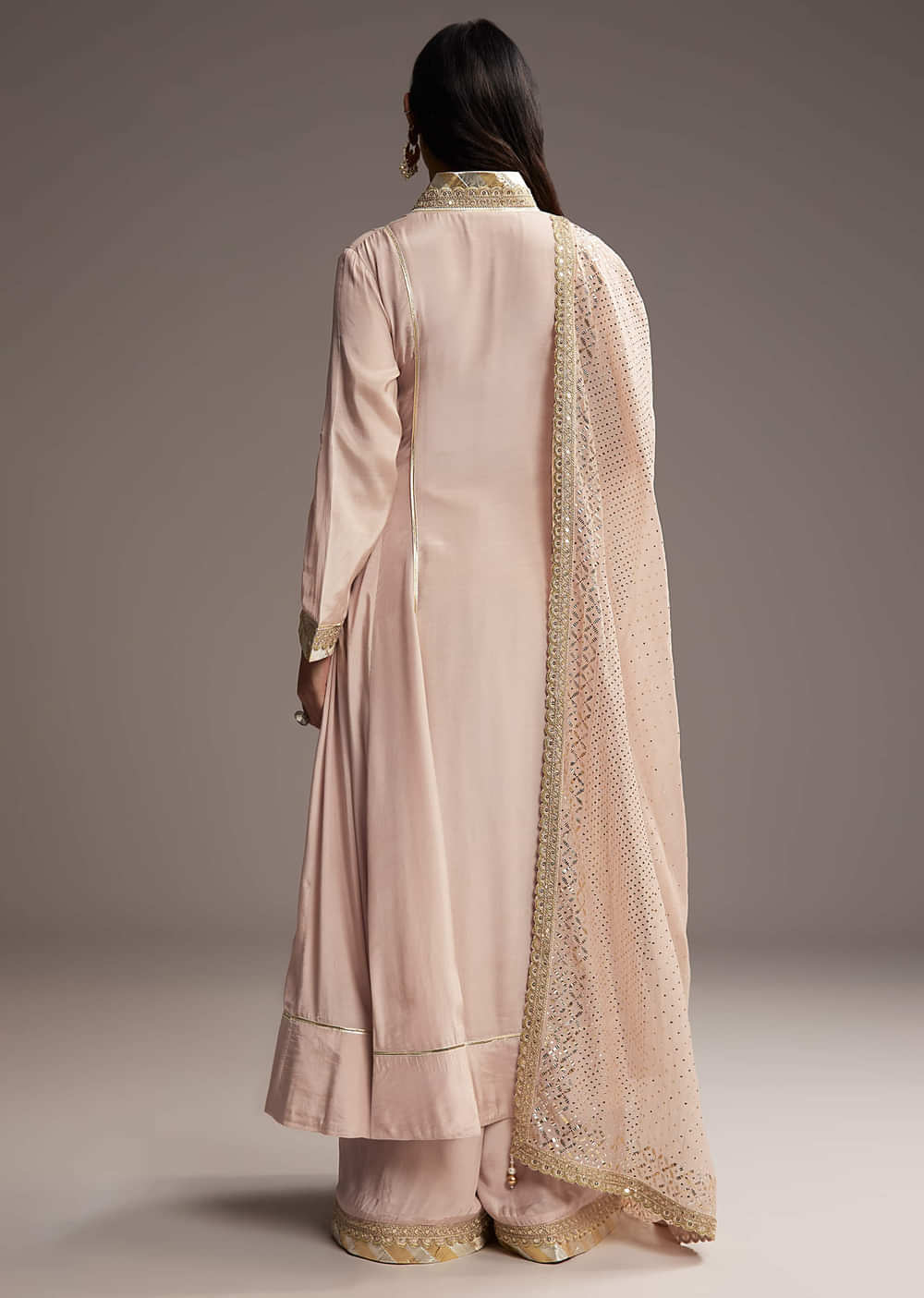 Pink Cotton Silk Anarkali Suit With Gotta Work