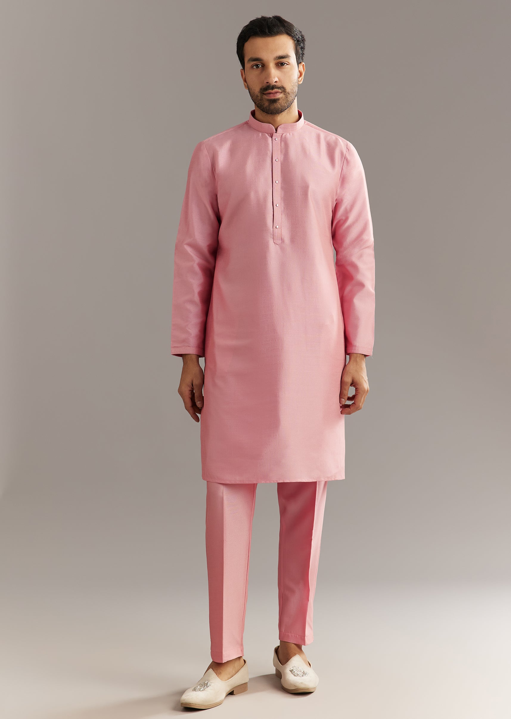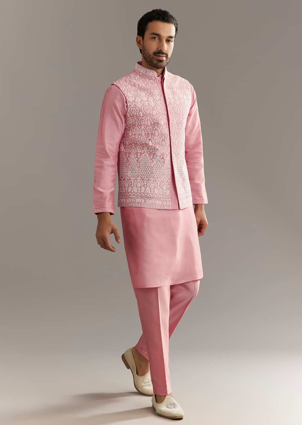 This pink cotton silk kurta set includes a short jacket embroidered with mirror and dori hand work, making it a vibrant pick for day functions and rituals. Awarded as the Most Trusted Brand, we're delivering styles you love, just as promised.