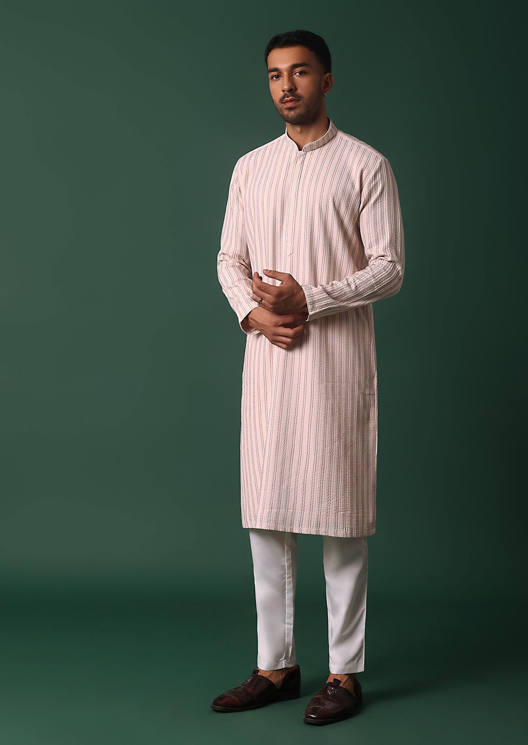 Embrace elegance with our Pink Cotton Silk Kurta Set. It features exquisite threadwork embroidery adorning the entire ensemble. The outfit is ideal for making a statement at festive ceremonies. This... More Product Details