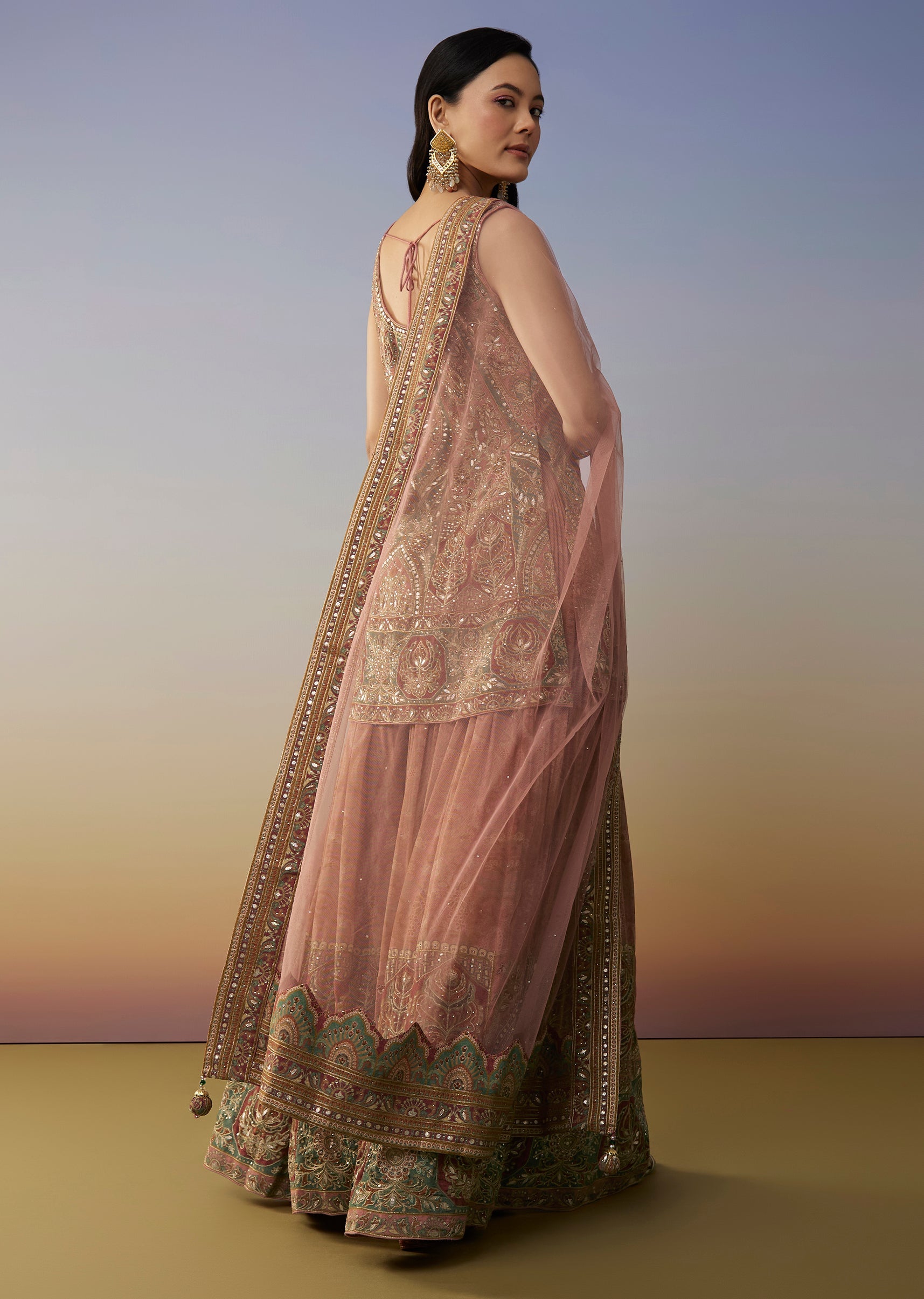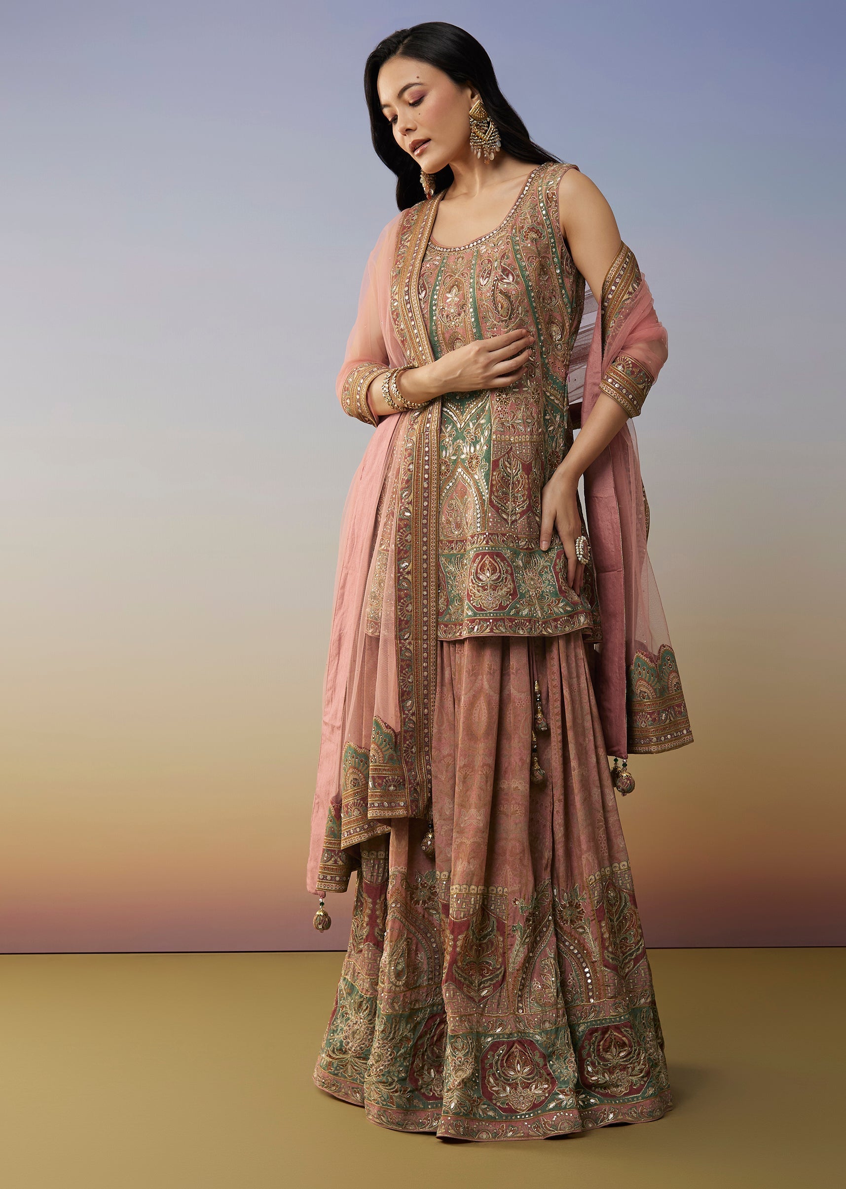 Pink Crepe Palazzo Suits with Gotta Lace Work