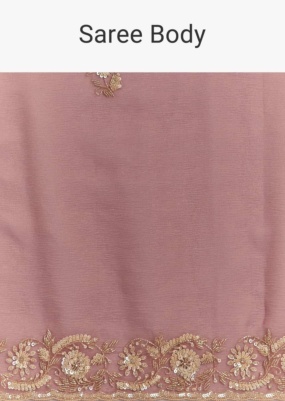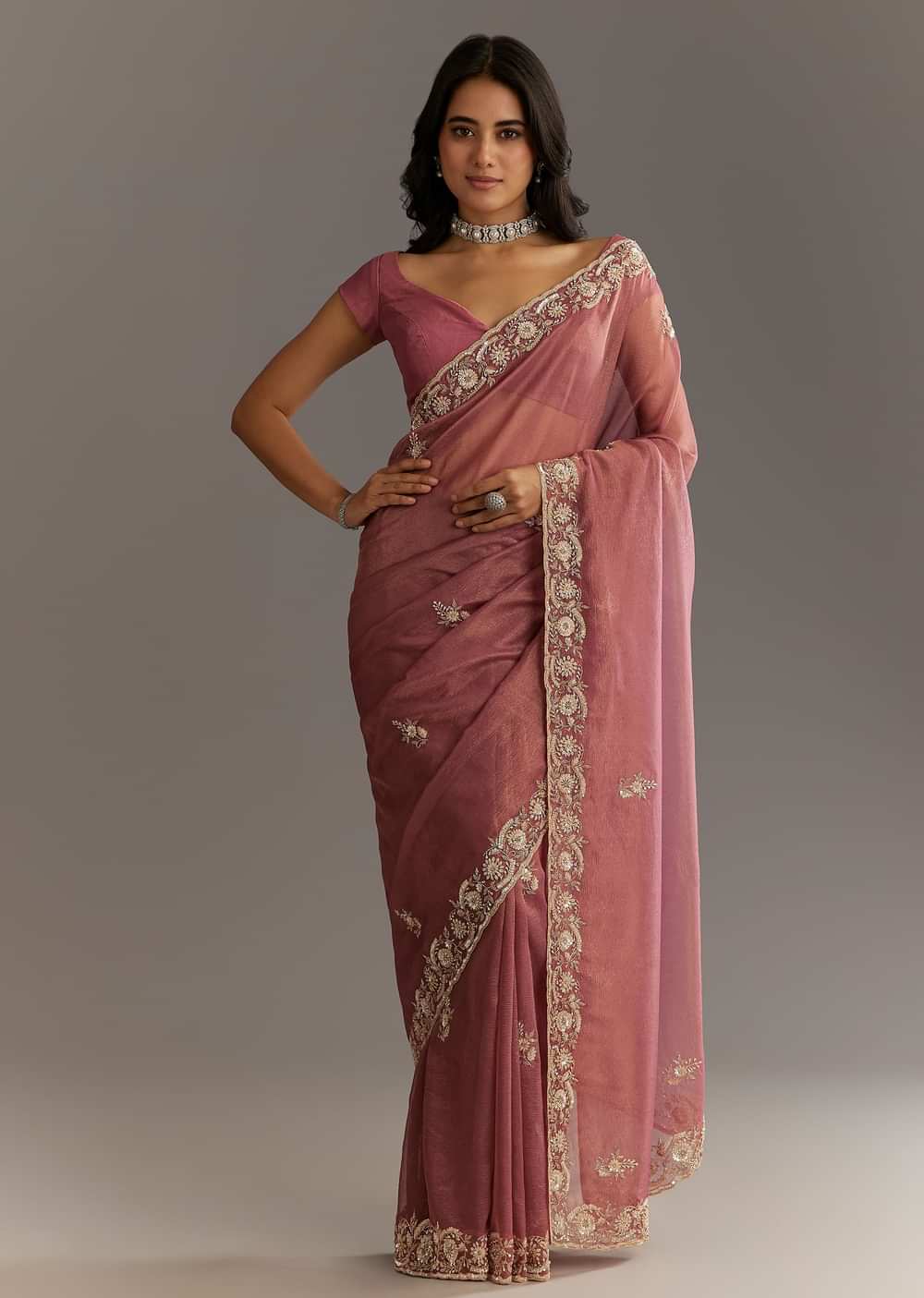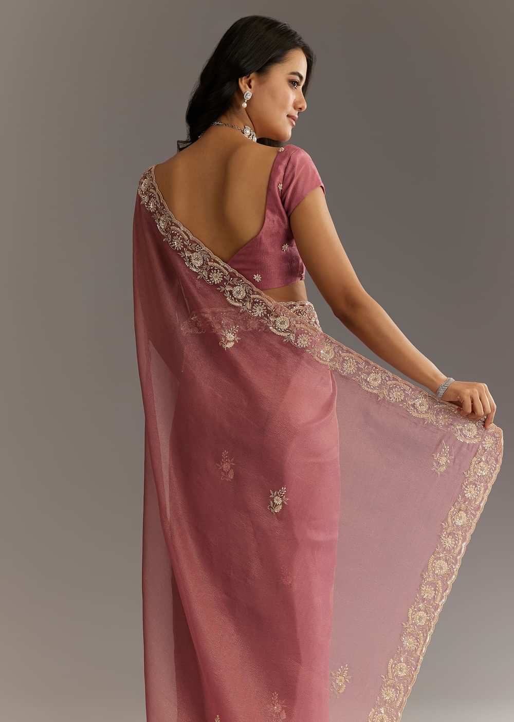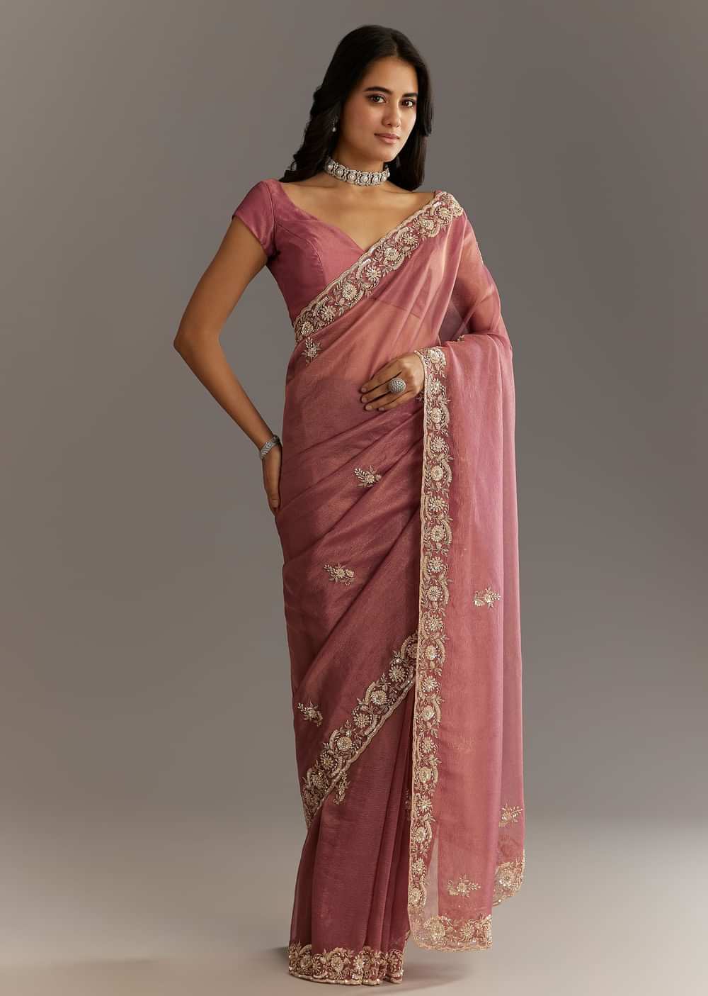 Pink Crushed Tissue Floral Embroidered Saree With Cutdana And Sequins